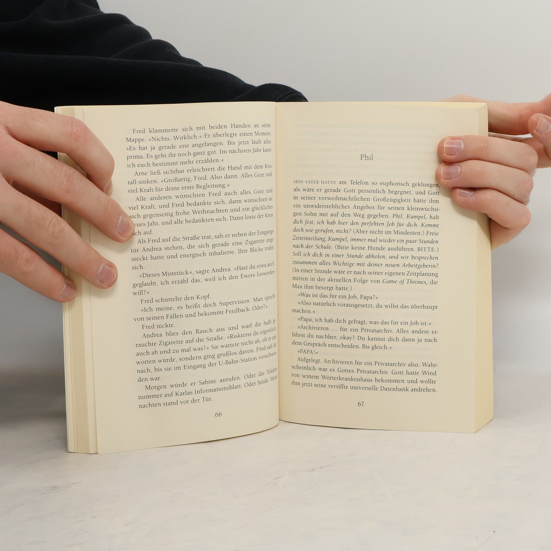 Eine berührende Geschichte über die Schönheit des Lebens und die erstaunliche Entwicklung einer Vater-Sohn-Beziehung. Das Buch zum ARD-Fernsehfilm Wie begegnet man einer Frau, die höchstens noch ein halbes Jahr zu leben hat? Fred glaubt es zu wissen. Er ist alleinerziehender Vater und hat sich zum ehrenamtlichen Sterbebegleiter ausbilden lassen, um seinem Leben mehr Sinn zu geben. Bei seinem ersten Einsatz möchte er alles richtig machen. Aber Karla, stark, spröde und eigensinnig, arrangiert sich schon selbst mit ihrem bevorstehenden Tod und möchte nur etwas menschliche Nähe – zu ihren Bedingungen. Als Freds Versuch, sie mit ihrer Vergangenheit zu versöhnen, grandios scheitert, darf nur noch sein 13-jähriger Sohn Phil Karla besuchen, um ihre Konzertfotos zu archivieren. Dann trifft Hausmeister Klaffki in einer kritischen Situation die richtige Entscheidung – und verhilft Fred zu einer zweiten Chance. » Dieser Roman ist keiner, der Angst vorm Sterben macht. Im Gegenteil. Er macht Lust auf das Leben. « Christine Westermann