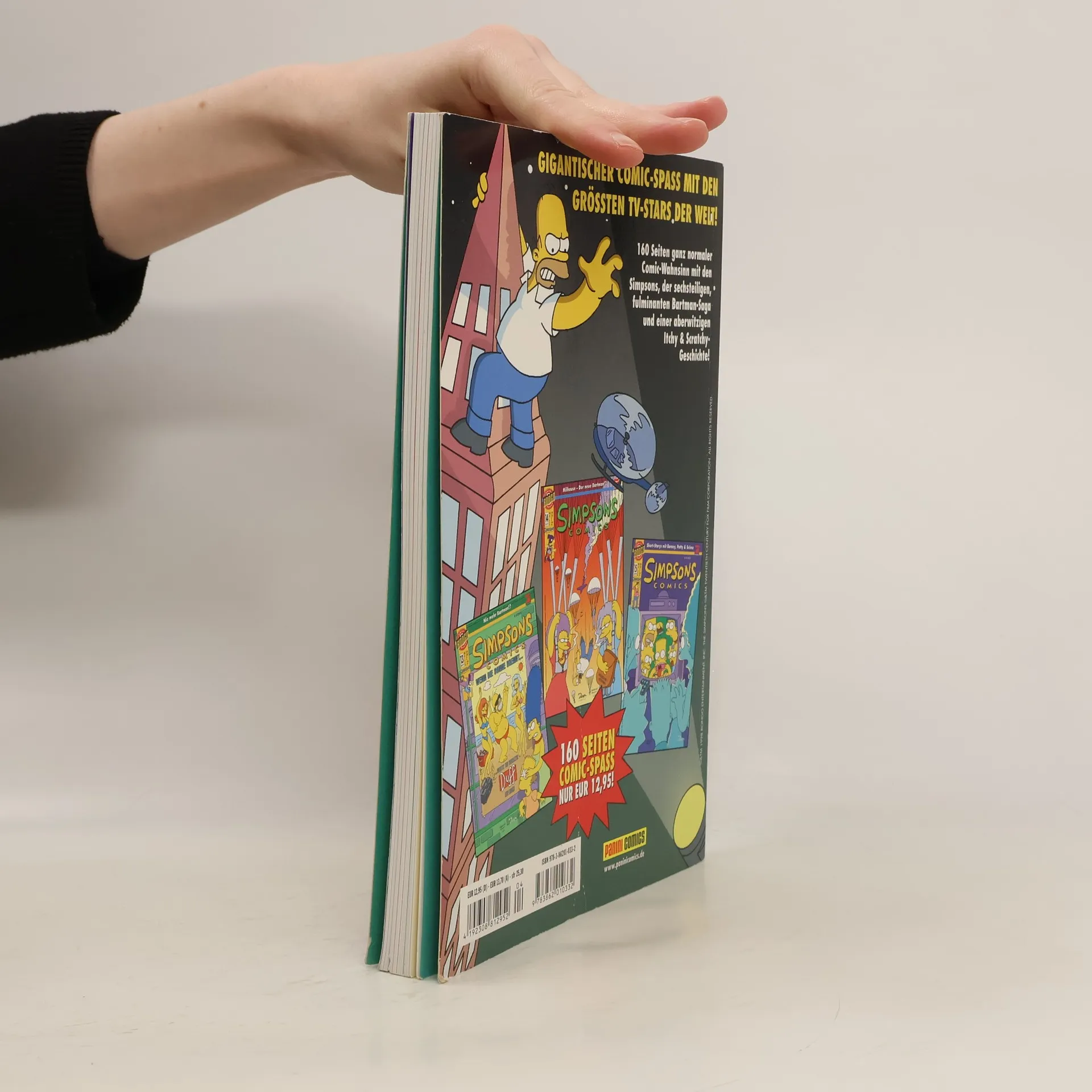 GIGANTISCHER COMIC-SPASS MIT DEN GRÖSSTEN TV-STARS DER WELT! 160 Seiten ganz normaler Comic-Wahnsinn mit den Simpsons, der sechsteiligen, fulminanten Bartman-Saga und einer aberwitzigen Itchy & Scratchy-Geschichte! 160 SEITEN COMIC-SPASS NUR EUR 12,95!