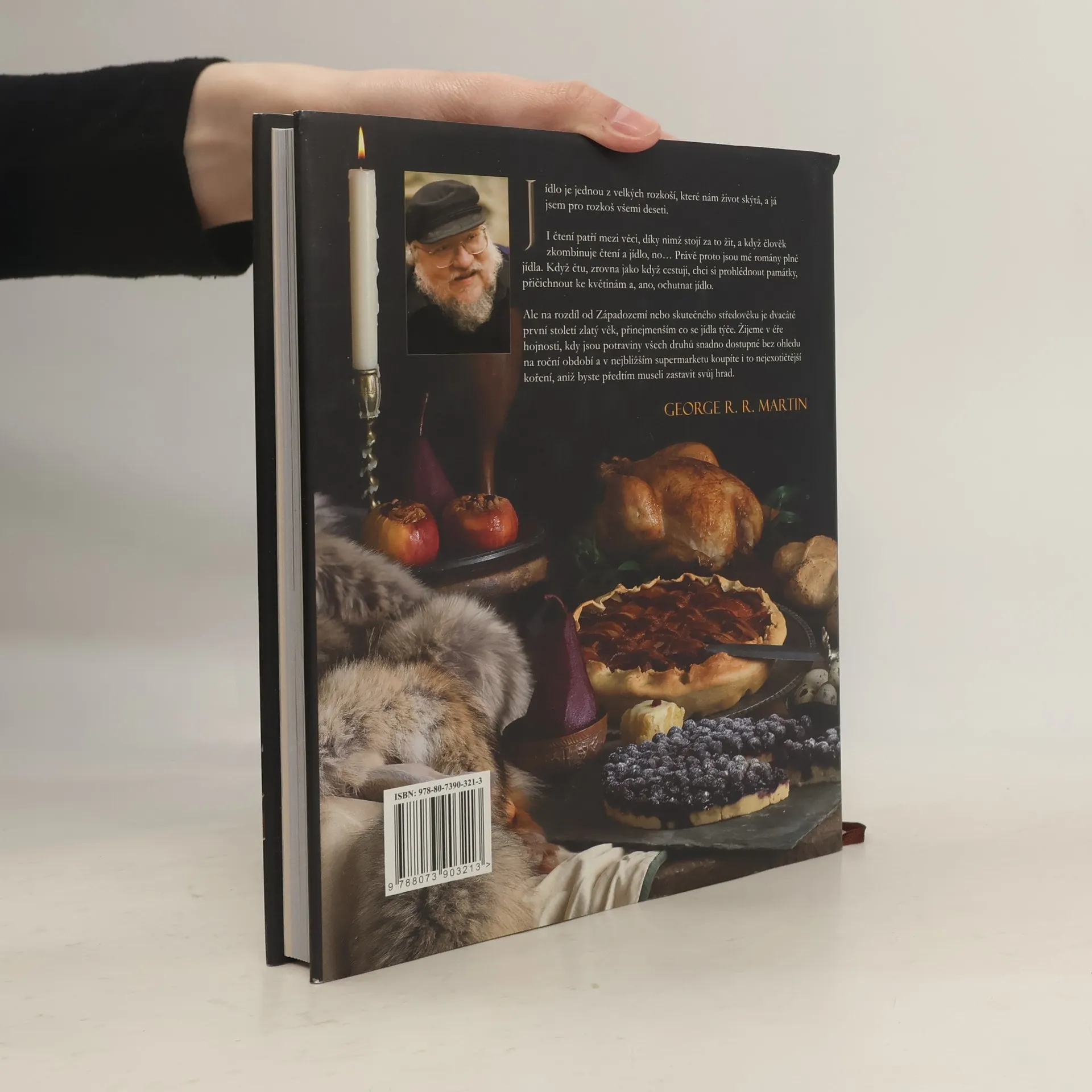 Vždycky jste si říkali, jaké by to bylo, navštívit hostinu na Zimohradu? Přáli jste si podělit se o citronový koláč se Sansou Stark, sníst si masový koláč s Noční hlídkou nebo ochutnat medovníčky spolu s Daenerys Targaryen? Bestseller George R. R. Martin - sága ledu a ohně - a televizní hit HBO Hra o trůny jsou vyhlášené tím, že přivádějí k životu svět Západozemí. Ale jedna důležitá přísada doposud vždy chyběla - pokrmy, na které se vám budou sbíhat sliny a které pomohou dotvořit atmosféru tohoto neobvyklého světa. Nyní podle seriálu, který předefinoval žánr fantasy, vznikla kuchařka, která možná předefinuje vaše večeře... a obědy a snídaně. Průvodce stolováním a zábavou ve stylu Sedmi Království. Vyčerpávající a komplexní průvodce doprovázený pasážemi ze všech pěti knih ságy Ledu a ohně a celobarevnými fotografiemi zaručí, že se vám budou sbíhat sliny. Nezbytnost pro fanoušky senzace a fenoménu jménem Hra o trůny, na který čekaly milióny kručících žaludků po celém světě. A pamatujte - Zima se blíží - tak se nebojte přibrat pár kil. S předmluvou George R.R. Martina