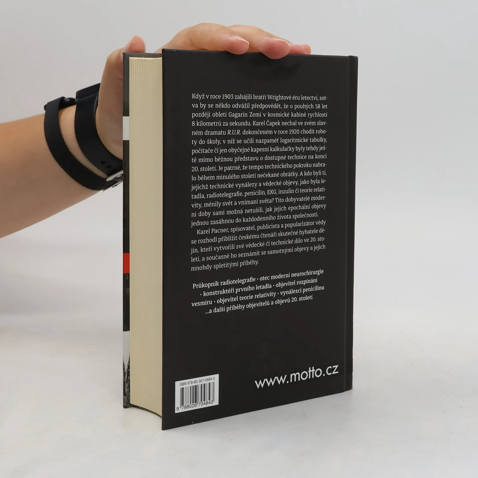 Když v roce 1903 zahájili bratří Wrightové éru letectví, sotva by se někdo odvážil předpovědět, že o pouhých 58 let později obletí Gagarin Zemi v kosmické kabině rychlostí 8 kilometrů za sekundu. Karel Čapek nechal ve svém slavném dramatu R.U.R. dokončeném v roce 1920 chodit roboty do školy, v níž se učili nazpaměť logaritmické tabulky, počítače či jen obyčejné kapesní kalkulačky byly tehdy ještě mimo běžnou představu o dostupné technice na konci 20. století. Je patrné, že tempo technického pokroku nabralo během minulého století nečekané obrátky. A kdo byli ti, jejichž technické vynálezy a vědecké objevy jako byla letadla, radiotelegrafie, penicilin, EKG, inzulin či teorie relativity, měnily svět a vnímaní světa? Ti to dobyvatelé moderní doby sami možná netušili, jak jejich epochální objevy jednou zasáhnou do každodenního života společnosti Karel Pacner, spisovatel, publicista a popularizátor vědy se rozhodl přiblížit českému čtenáři skutečné hybatele dějin, kteří vytvořili své vědecké či technické dílo ve 20. století, a současně ho seznámit se samotnými objevy a jejich mnohdy spletitými příběhy.