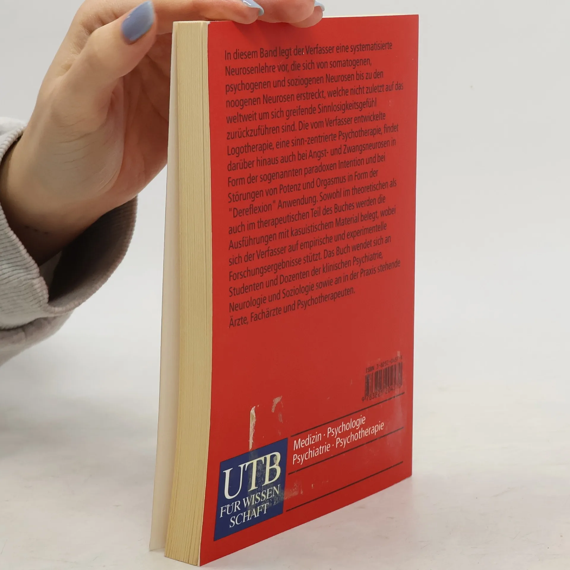In diesem Band legt der Verfasser eine systematisierte Neurosenlehre vor, die sich von somatogenen, psychogenen und soziogenen Neurosen bis zu den noogenen Neurosen erstreckt, welche nicht zuletzt auf das weltweit um sich greifende Sinnlosigkeitsgefühl zurückzuführen sind. Die vom Verfasser entwickelte Logotherapie, eine sinn-zentrierte Psychotherapie, findet darüber hinaus auch bei Angst- und Zwangsneurosen in Form der sogenannten paradoxen Intention und bei Störungen von Potenz und Orgasmus in Form der "Dereflexion" Anwendung. Sowohl im theoretischen als auch im therapeutischen Teil des Buches werden die Ausführungen mit kasuistischem Material belegt, wobei sich der Verfasser auf empirische und experimentelle Forschungsergebnisse stützt. Das Buch wendet sich an Studenten und Dozenten der klinischen Psychiatrie, Neurologie und Soziologie sowie an in der Praxis stehende Ärzte, Fachärzte und Psychotherapeuten.