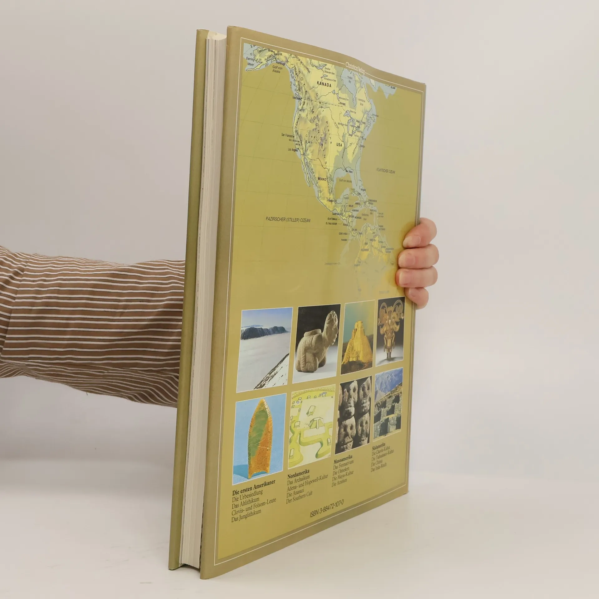 Das Buch fasst die Ergebnisse von zwei Jahrhunderten archäologischer, historischer und anthropologischer Forschungen zusammen und beschäftigt sich mit den ersten amerikanischen Zivilisationen. Es verfolgt die Chronologie von der ursprünglichen Besiedlung über verschwundene Kulturen und Zivilisationen und interpretiert die Geschichte der Völker sowie die Geschichte der ersten Kulturzentren von der Antarktis bis Feuerland. Der Atlas enthält Karten, chronologische Übersichten, geografische und namenskundliche Register.