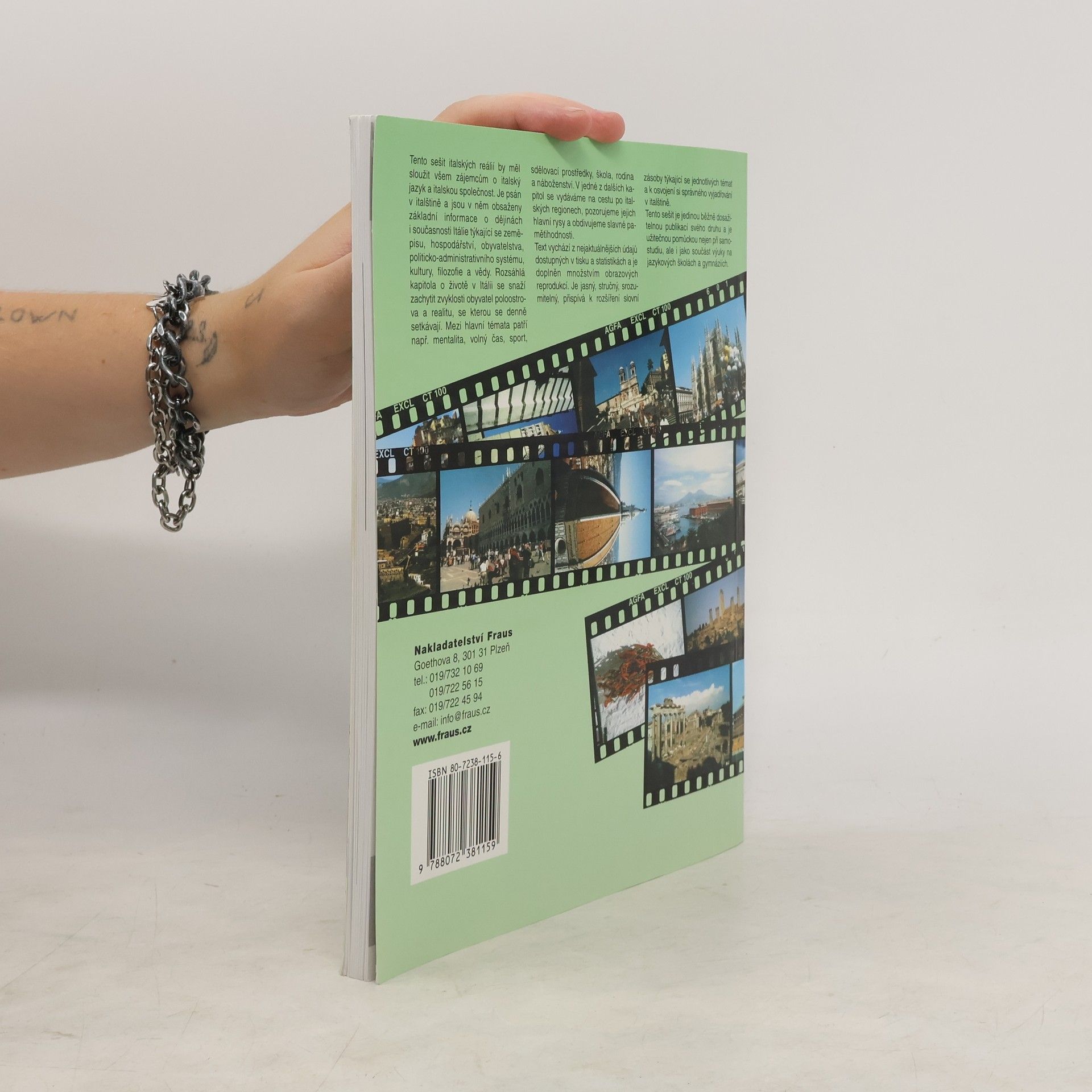 Učebnice obsahuje základní informace o dějinách Itálie. V rozsáhlé kapitole o životě v Itálii jsou zachyceny zvyklosti obyvatel poloostrova a každodenní realita. Mezi hlavní témata patří např. mentalita, volný čas, sport, sdělovací prostředky, škola, rodina a náboženství. Jednu kapitolu tvoří také cesta po italských regionech, zachycuje jejich hlavní rysy a významné pamětihodnosti. Text vychází z nejaktuálnějších údajů dostupných v tisku a statistikách a je doplněn množstvím ilustračního materiálu. Jasný, stručný a srozumitelný jazyk přispívá k rozšíření slovní zásoby a k osvojení si správného vyjadřování v italštině. Publikace bude jistě vítanou a užitečnou pomůckou pro samostudium nebo jako doplněk výuky na jazykových školách a gymnáziích.