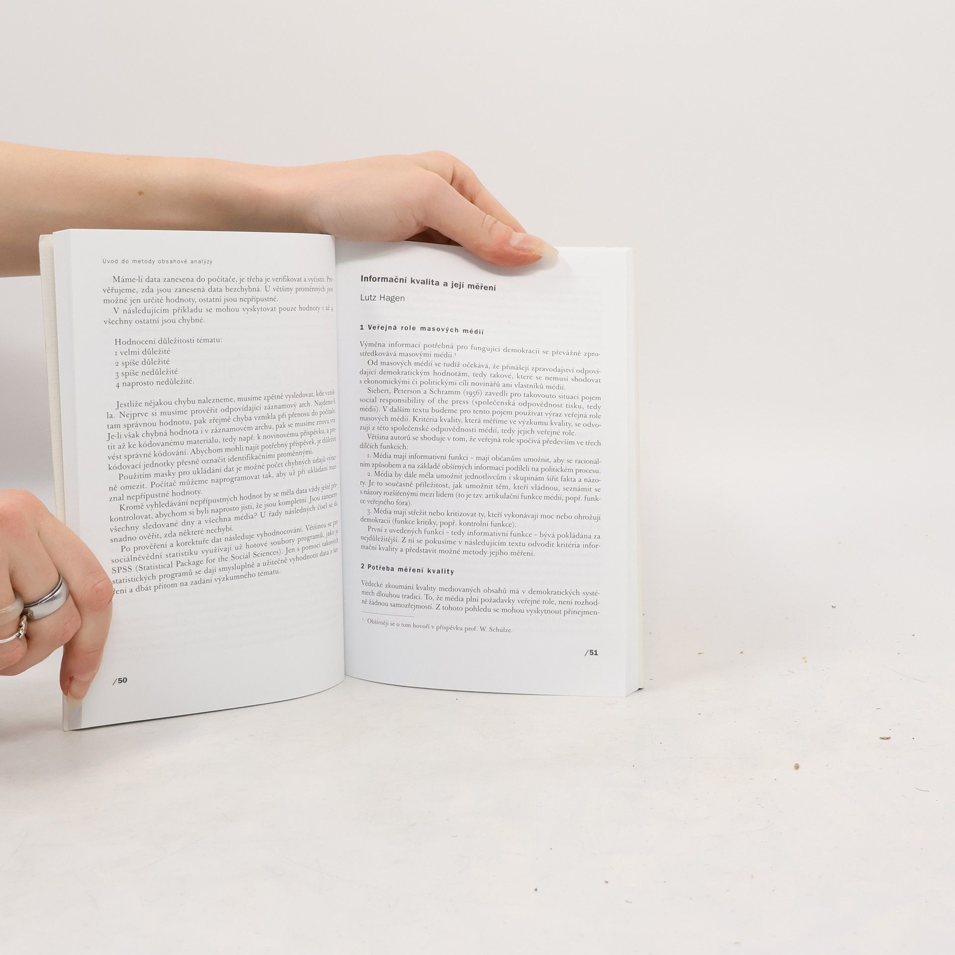 Třetí vydání knihy poskytující úvod do problematiky politické komunikace a obsahové analýzy mediálních informací. První část publikace tvoří tři texty sociologů z univerzity v Erlangenu-Norimberku, vypracované v rámci společného projektu s katedrou masové komunikace IKSŽ a Centrem mediálních studií FSV UK. Uvádějí čtenáře do problematiky vztahu médií a veřejné sféry, ukazují způsoby kvantitativního rozboru masově mediovaných sdělení a vyhodnocování zpravodajství. Druhá část knihy přináší konkrétní výsledky projektu, který se zabýval zobrazováním tzv. vánoční krize v České televizi na přelomu let 2000 a 2001 ve zpravodajství Českého rozhlasu.