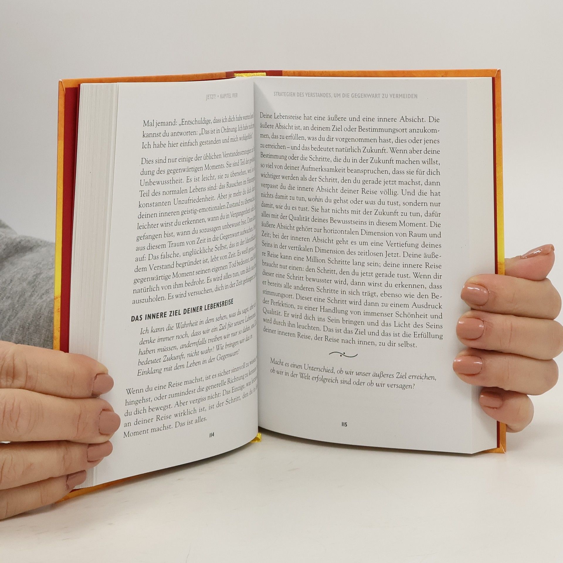 Der Leitfaden zum spirituellen Erwachen! Jetzt... Es gibt nur diesen Moment. Und darin liegt unsere Kraft. Denn das Jetzt ist der Eingang zu unserer tiefsten inneren Glückseligkeit, zu ewigem Sein, zu dem Frieden, den wir unser Leben lang ersehnen, verfolgen, jagen, verpassen. Hier ist er. Dieses Buch, bestechend in seiner Einfachheit und Poesie, ist ein Augen- und Herzöffner für jeden, vom Anfänger in spirituellen Dingen bis zum ´alten Hasen´. Alle Hintertürchen werden sanft geschlossen, bis wir vor dem Jetzt stehen. Hier ist ein Tor, sagt der Autor, nutze es! Kein Wunder, dass Eckhart Tolle so begehrt ist — die größten, tiefsten Wahrheiten klingen bei ihm so einleuchtend, schlicht und klar, dass man plötzlich alles versteht, ja, nicht nur versteht, sondern erlebt.