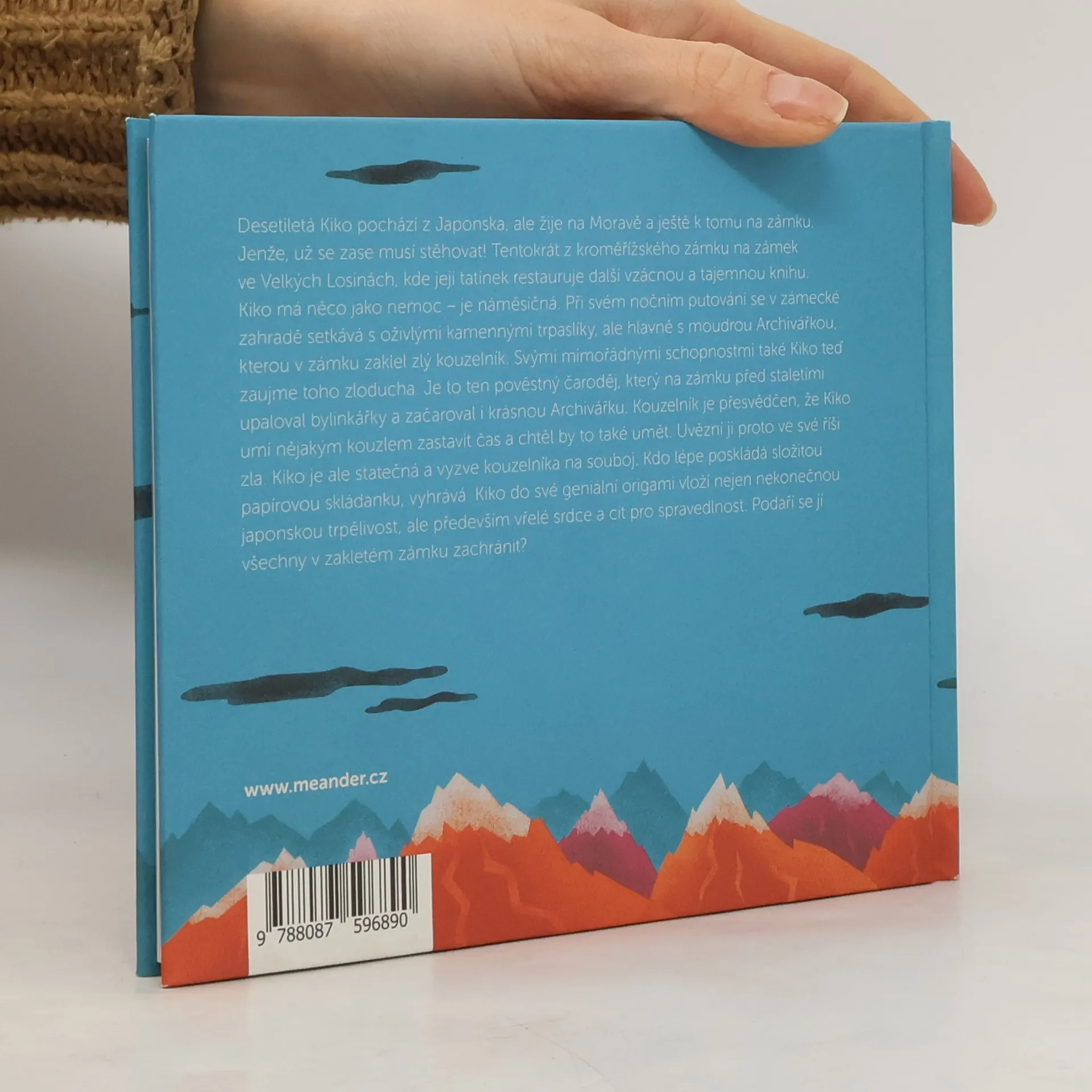 Desetiletá Kiko pochází z Japonska, ale žije na Moravě a ještě k tomu na zámku. Jenže – už se zase musí stěhovat! Tentokrát z Kroměřížského zámku na zámek ve Velkých Losinách, kde její tatínek restauruje další tajemnou knihu. Kiko má ale něco jako nemoc – působí na ni měsíc a ona v noci putuje zámkem… Náměsíčná Kiko se v zámecké zahradě setkává s oživlými kamennými trpaslíky, moudrou Archivářkou, ale svými mimořádnými schopnostmi zaujme také zlého kouzelníka. Je to ten pověstný zloduch, čaroděj, který na zámku před staletími upaloval bylinářky a zaklel tu i krásnou Archivářku. A dodnes ji tu ve věži vězní. Kouzelník je přesvědčen, že Kiko umí pomocí skládaček origami zastavit čas. Rád by to také uměl a uvěznil ji ve své říši zla. Ale Kiko je statečná – hned tak se nedá a vyzve kouzelníka na souboj. Kdo lépe poskládá složitou papírovou skládanku, vyhrává. Kiko do té své vloží nejen nekonečnou japonskou trpělivost, ale především vřelé srdce a cit pro spravedlnost. Myslí víc než na sebe na oběti temných kouzel a pokusí se je zachránit.