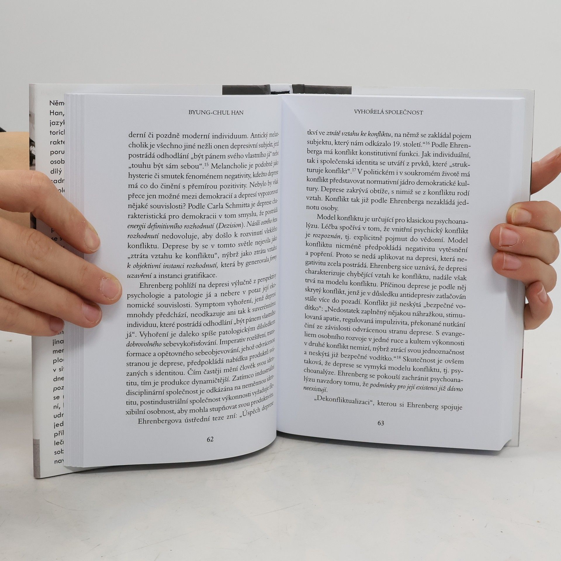 Byung-Chul Han, německy píšící filozof korejského původu, přináší pronikavou analýzu současné doby. Uvádí, že dnešní charakteristické choroby, jako jsou deprese, porucha pozornosti, hraniční porucha osobnosti a syndrom vyhoření, nejsou náhodné, ale odrážejí zásadní proměny západních společností od konce studené války. Minulé století, které Han nazývá imunologickým, bylo poznamenáno jasným rozdělením mezi vnitřkem a vnějškem, přičemž lidé se mobilizovali proti vnějším hrozbám. Dnešní globalizovaný svět, založený na neustálém sdílení a informační přesycenosti, vede k vymizení jinakosti a plodné negativity, což paradoxně posiluje teror pozitivity. Tato situace způsobuje, že psychické problémy nejsou výsledkem překážek, ale tlaku na seberealizaci a maximální výkon. Subjekt výkonnosti, který je sám sobě pánem, se ocitá v pasti nutkavé svobody, což vede k vykořisťování sebe sama. Han analyzuje jevy, které tradiční psychologie nedokáže vysvětlit. V našem vydání najdete pět esejů, které se zabývají vyčerpaností z přemíry pozitivity, tlakem na transparentnost, civilizačním regressem spojeným s digitální kulturou a vymizením erotického prožitku v narcistickém světě.