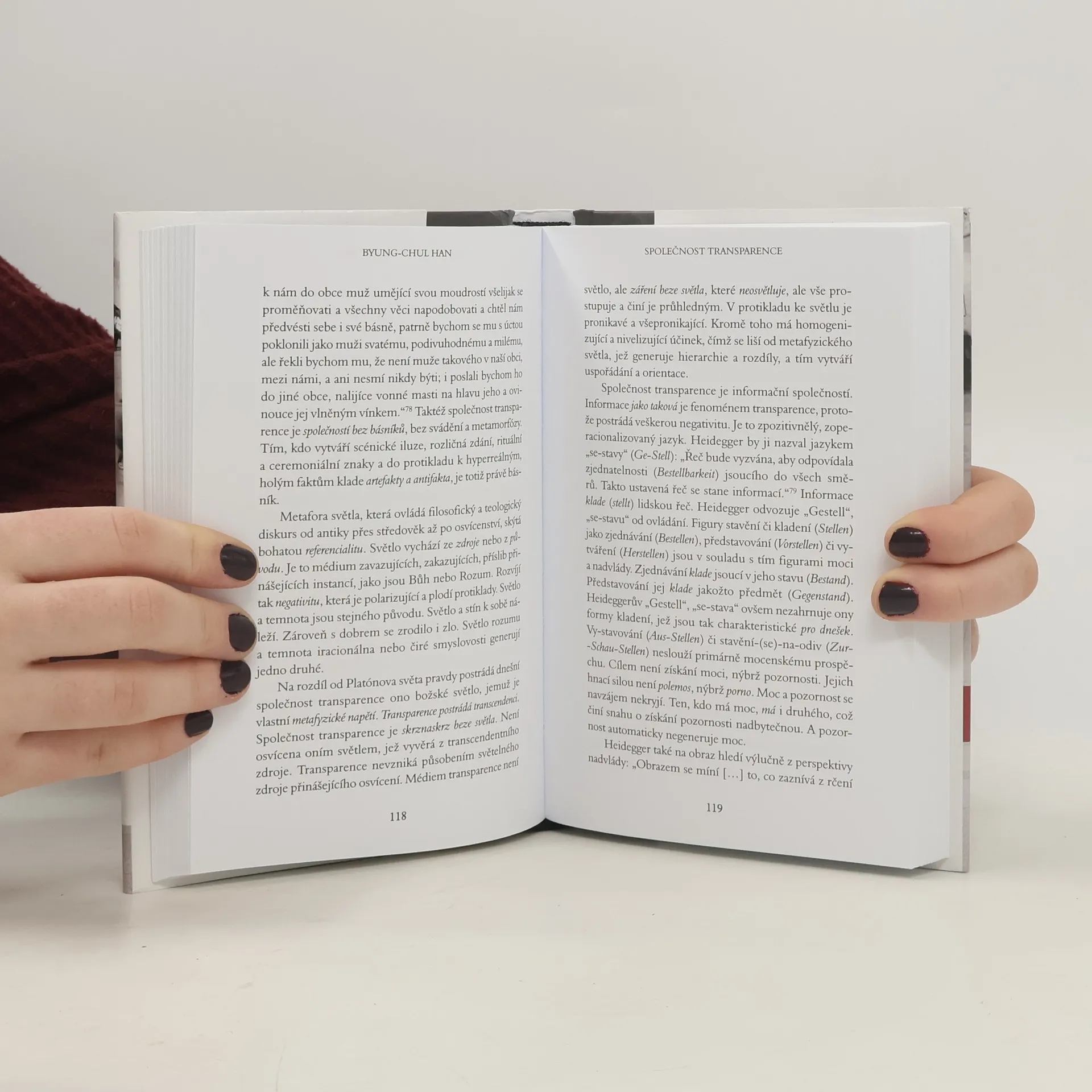 Byung-Chul Han, německy píšící filozof korejského původu, přináší pronikavou analýzu současné doby. Uvádí, že dnešní charakteristické choroby, jako jsou deprese, porucha pozornosti, hraniční porucha osobnosti a syndrom vyhoření, nejsou náhodné, ale odrážejí zásadní proměny západních společností od konce studené války. Minulé století, které Han nazývá imunologickým, bylo poznamenáno jasným rozdělením mezi vnitřkem a vnějškem, přičemž lidé se mobilizovali proti vnějším hrozbám. Dnešní globalizovaný svět, založený na neustálém sdílení a informační přesycenosti, vede k vymizení jinakosti a plodné negativity, což paradoxně posiluje teror pozitivity. Tato situace způsobuje, že psychické problémy nejsou výsledkem překážek, ale tlaku na seberealizaci a maximální výkon. Subjekt výkonnosti, který je sám sobě pánem, se ocitá v pasti nutkavé svobody, což vede k vykořisťování sebe sama. Han analyzuje jevy, které tradiční psychologie nedokáže vysvětlit. V našem vydání najdete pět esejů, které se zabývají vyčerpaností z přemíry pozitivity, tlakem na transparentnost, civilizačním regressem spojeným s digitální kulturou a vymizením erotického prožitku v narcistickém světě.