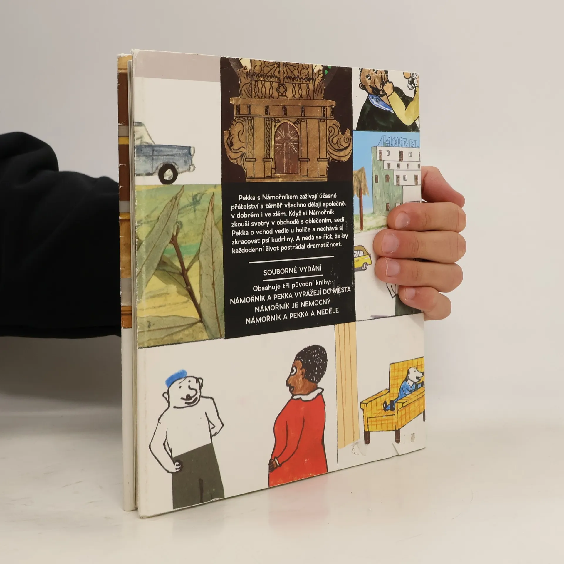 Jednou ráno Námořník nemůže za nic na světě najít svetr, a tak se rozhodne, že si půjde do města koupit nový. A jeho pes Pekka s ním. Po cestě potkají smutného klauna, který ztratil trumpetku, paní Jacksonovou, porouchá se jim auto... Ve městě vyberou svetr, Pekka si odskočí ke kadeřníkovi a Námořník pro nějaké nové tetování. – Pekka s Námořníkem zažívají úžasné přátelství a téměř vše dělají společně, v dobrém i ve zlém. A nedá se říct, že by jejich každodenní život postrádal dramatičnosti. Souborné vydání tří knih švédského výtvarníka Jockuma Nordströma spojuje překvapivá a nekonformní logika vyprávěných příběhů, nepodbízivý smysl pro humor i výtvarný výraz spojující kresbu, koláž a prvky komiksu.
