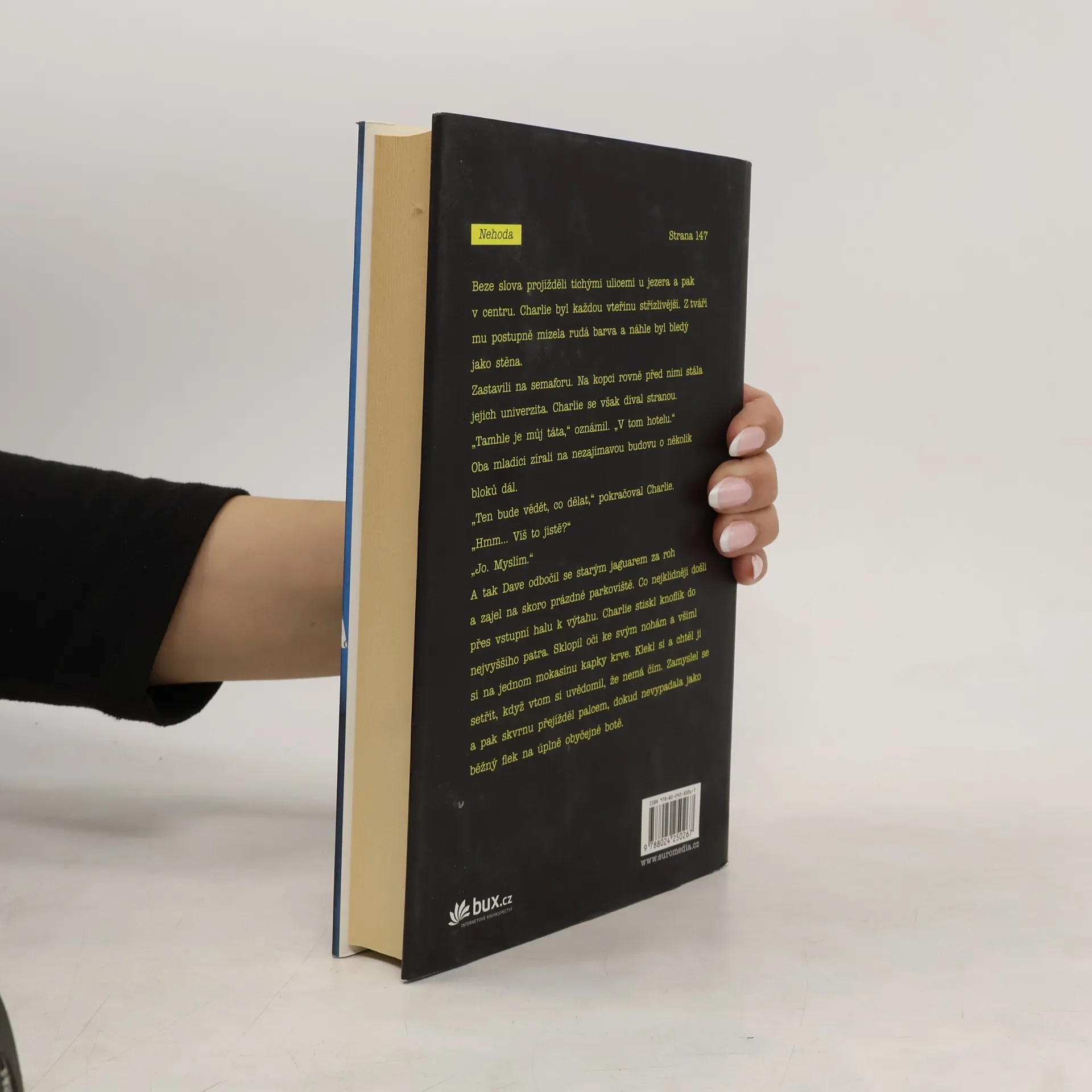 „Pokud milujete nervy drásající příběhy, letos jsem žádný lepší než tenhle nečetl.“ Stephen King Na začátku byl rukopis. Anonymní příběh nazvaný Nehoda. Kdokoli si ho přečetl, okamžitě věděl, že tenhle text změní svět. Že tomu, kdo ho vydá, přinese obrovský zisk. Ale kdokoli zná jeho obsah, ten se rázem dostává do smrtelného nebezpečí – a morálního konfliktu. Newyorská literární agentka Isabel Reedová či Hayden Grey, zástupce CIA v Kodani, o tom vědí své. A pak je tu pochopitelně autor, ukrytý v Curychu a čekající, až jeho kniha vyjde... Nehoda odkrývá ledacos ze života mocných a vlivných lidí. Putuje napříč vydavatelstvími a zachraňuje či ničí kariéry a společnosti. A donutí každého konfrontovat své představy o sobě se svým skutečným já. Nehoda je nový působivý, důmyslný a mnohovrstevný thriller Chrise Pavoneho (držitele prestižních cen Edward Award a Anthony Award za debut Bez domova). Thriller, před nímž neutečete – nebo uděláte velkou chybu.