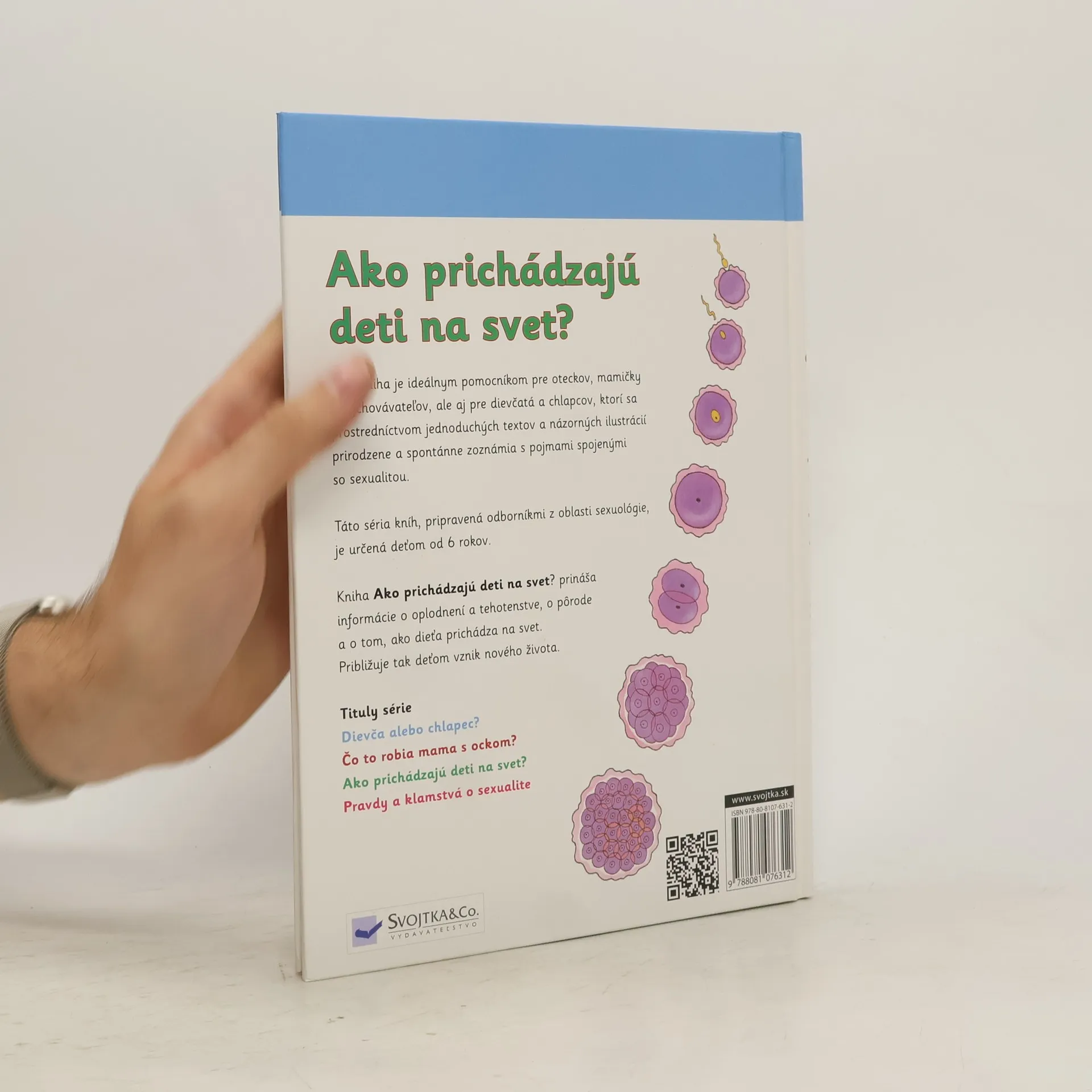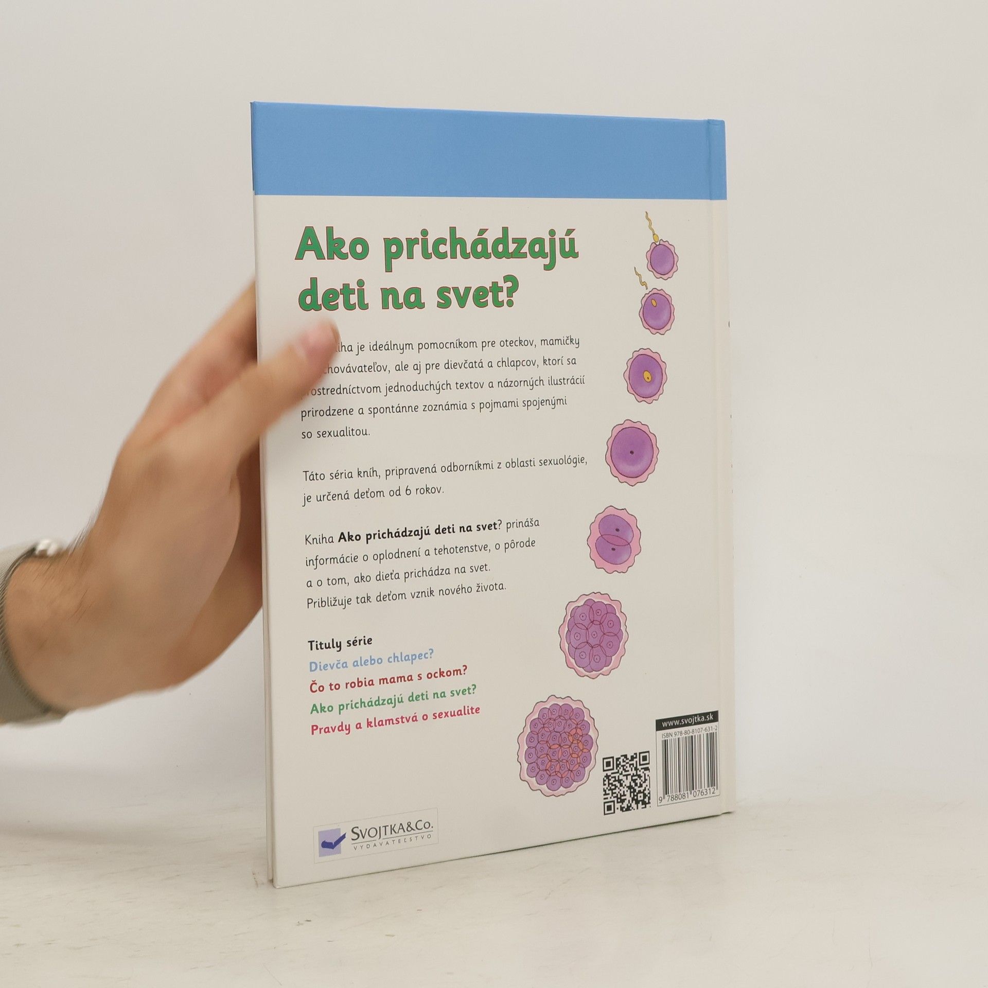 Tituly z edice, do které patří i tato knížka, jsou nejen ideálními pomocníky pro tatínky, maminky a vychovatele, ale jsou hlavně určeny pro samotné holky a kluky od 6 let. Za pomoci jednoduchých textů přiměřených jejich věku a názorných kreseb je přirozeně a spontánně seznamují s pojmy spojenými se sexualitou. Kniha Jak přicházejí děti na svět? přináší informace o oplodnění, těhotenství i porodu - zkrátka o tom, jak dítě přichází na svět. Přibližuje tak dětem vznik nového života. Naučte se za pomoci této publikace komunikovat s dětmi o sexualitě přirozeně! Nabídněte jim srozumitelné a pravdivé informace!