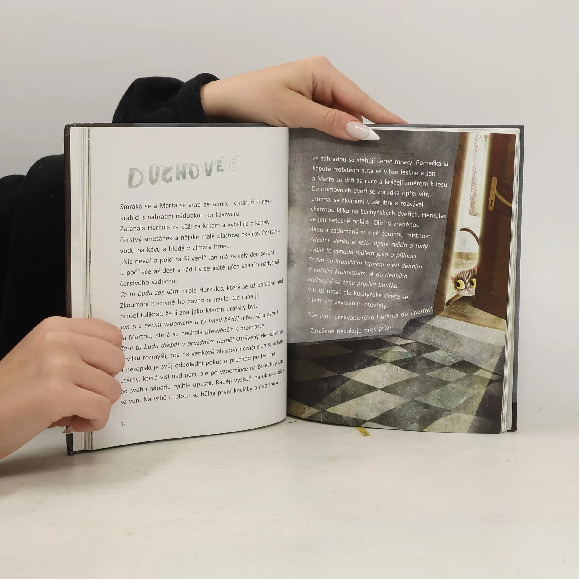 Rozmazlený pražský kocour Herkules se se svou mladou paní a jejím mužem přestěhují do starého statku za vesnicí, kde se mu ani trochu nelíbí. V zarostlé zahradě se seznámí s toulavou kočkou Komtesou a vyslechne si její vyprávění o kočičích strašidlech, která se v jeho novém domově ukrývají. Zpočátku se zdráhá jejím varováním uvěřit, ale brzy se přesvědčí, že Komtesa mluví pravdu. Kočičí duchové působí obyvatelům domu velké škody a vinu vždycky svalí na Herkula. Rozzlobený kocour se strašidlům rozhodne postavit.. Knížka je určena zejména dětem mladšího školního věku.
