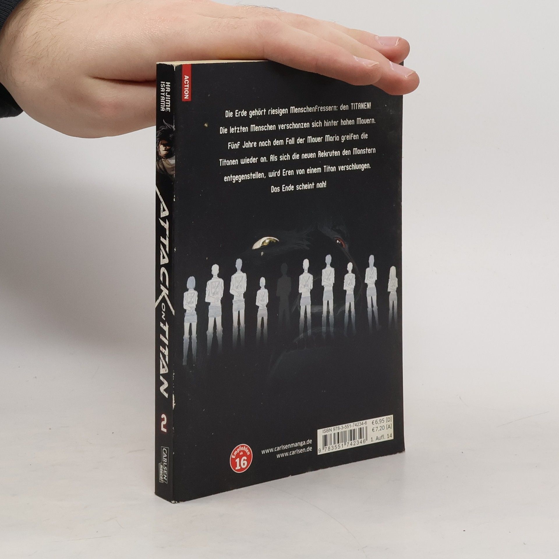 Dieser einzigartige Manga um den verzweifelten Kampf der Menschheit gegen übermächtige Titanen vereint Action, Fantasy und Horror in einer mitreißenden Geschichte. Attack on Titan gilt weltweit als einer der beliebtesten Titel und sorgt auch als Anime, Realfilm und mit diversen Videospielen für Furore! Die Erde gehört riesigen Menschenfressern: den TITANEN! Fünf Jahre nach dem Fall der Mauer Maria greifen die Titanen noch einmal die letzten Menschen an. Als sich die neuen Rekruten den Monstern entgegenstellen, wird Eren von einem Titan verschlungen. Das Ende scheint nah. Weitere Infos: - ab 16 Jahren- Abgeschlossen in 34 Bänden- edle Deluxe-Edition im Hardcover erhältlich- mehrere Spin-off-Serien und Guidebooks - Anime und Filme bei Kazé und als Stream- diverse Videospiele