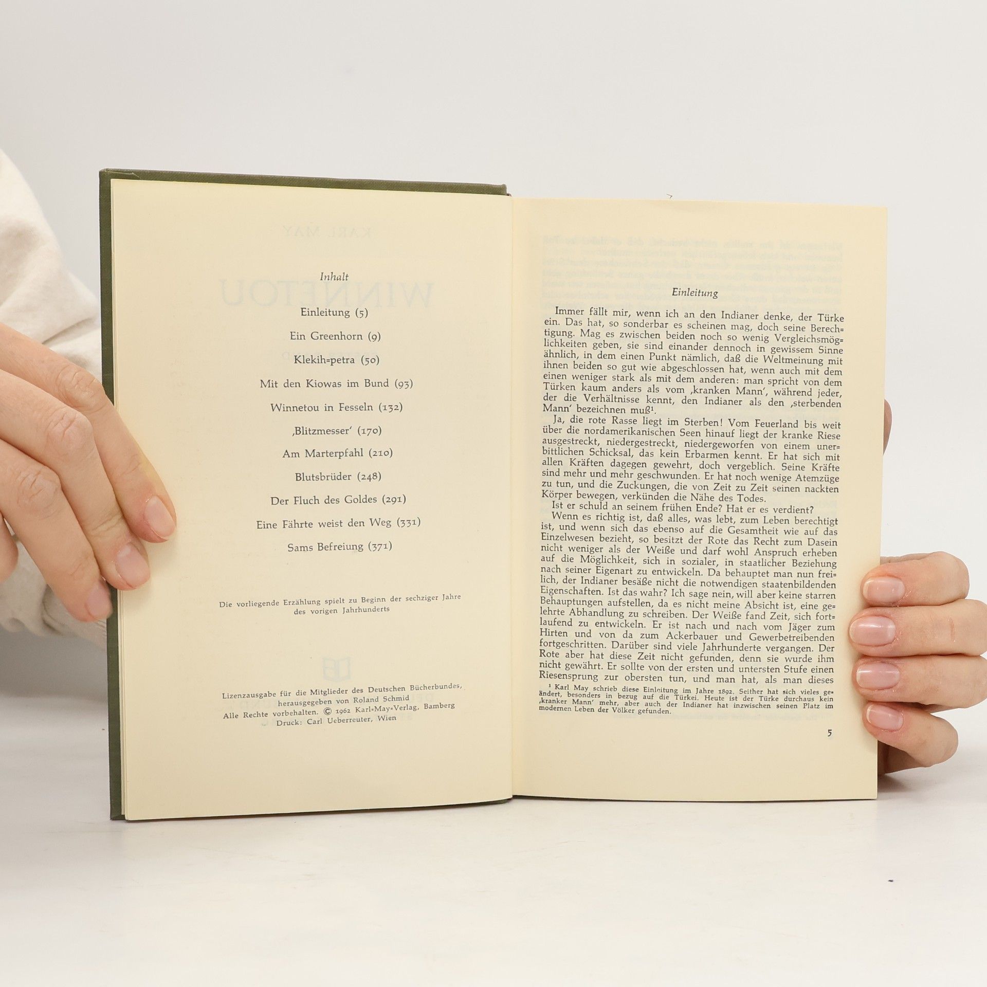 Der Leser erfährt, wie der Ich-Erzähler zum berühmten Westmann Old Shatterhand wird und die Freundschaft des edlen Apatschen Winnetou erringt. Das tragische Schicksal Nscho-tschis verleiht dieser Geschichte jenen Hauch von Schwermut, der über dem verzweifelten Todesringen der roten Rasse liegt.