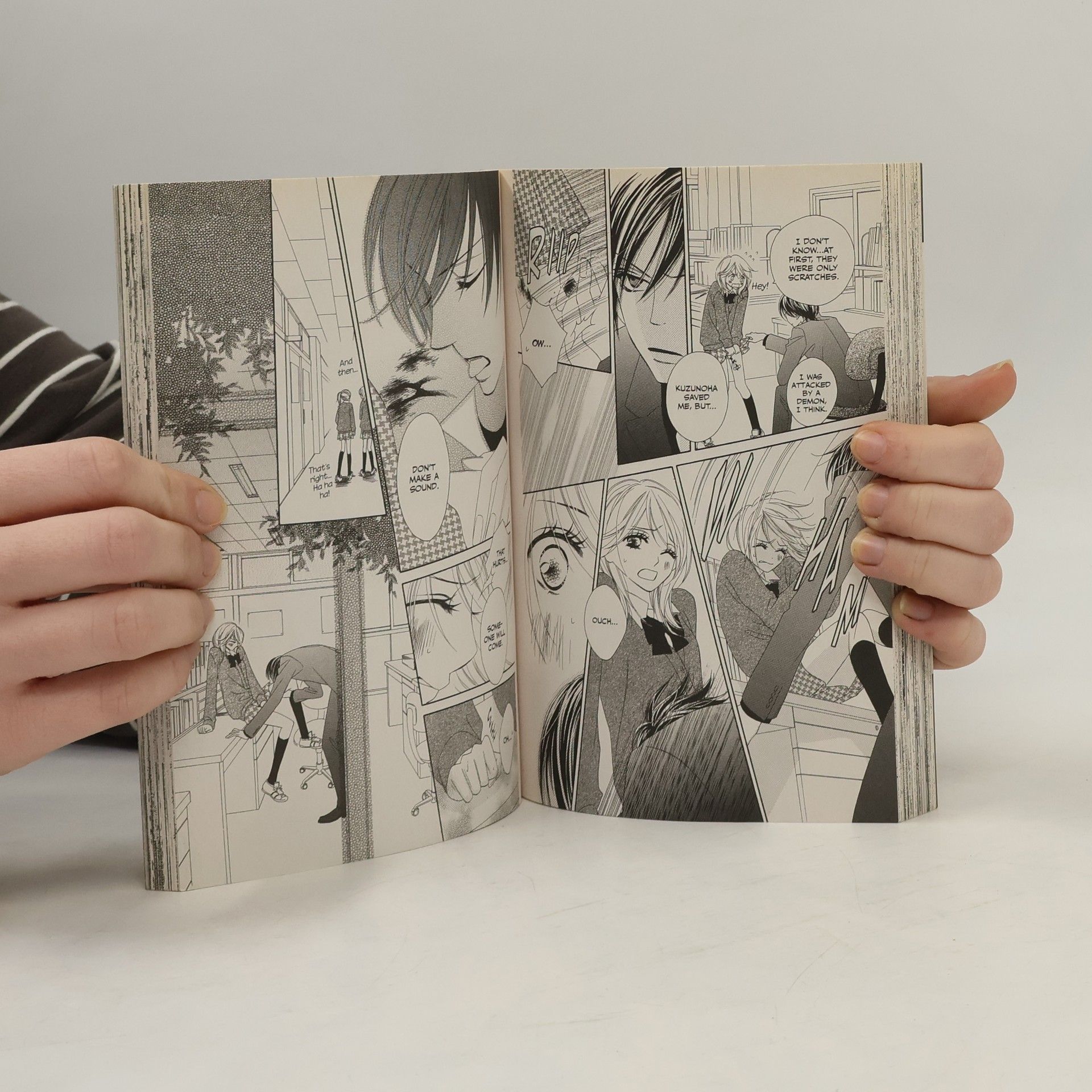 He loves her blood, but does her love her?!R to L (Japanese Style). There is a world of myth and magic that intersects ours, and only a special few can see it. Misao Harada is one such person, and she wants nothing to do with magical realms. She just wants to have a normal high school life and maybe get a boyfriend. All that changes one day when Misao is attacked by a demon. Her childhood friend Kyo suddenly returns to save her and tend to her cuts--with his tongue! It turns out Misao is the bride of prophecy, whose blood gives power to the demon clan who claims her. But most demons want to keep her power for themselves--by eating her! Now Misao is just trying to stay alive...and decide if she likes it when Kyo licks her wounds.