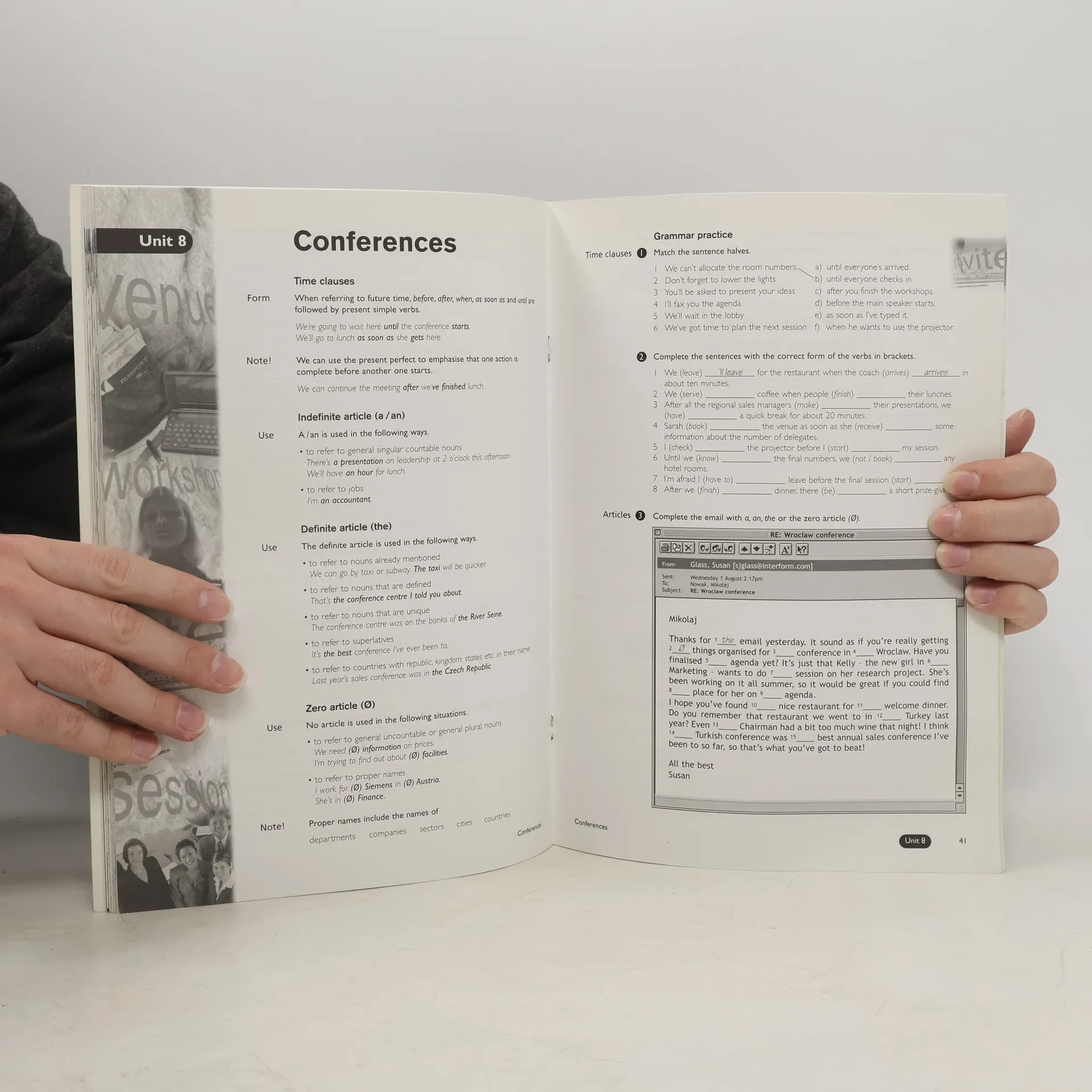 This workbook (with answer key) provides a language-focused supplement to the student's book. Each four-page unit is split into grammar and a vocabulary section. It follows the topics and language syllabus of the student's book, providing essential revision and an extension of the material. After every four units there is a language review consisting of 50 grammar questions and 50 multiple-choice vocabulary questions based on the previous 4 units. The writing section provides guidance on writing emails, formal letters and faxes. An answer key is provided at the back of the book.