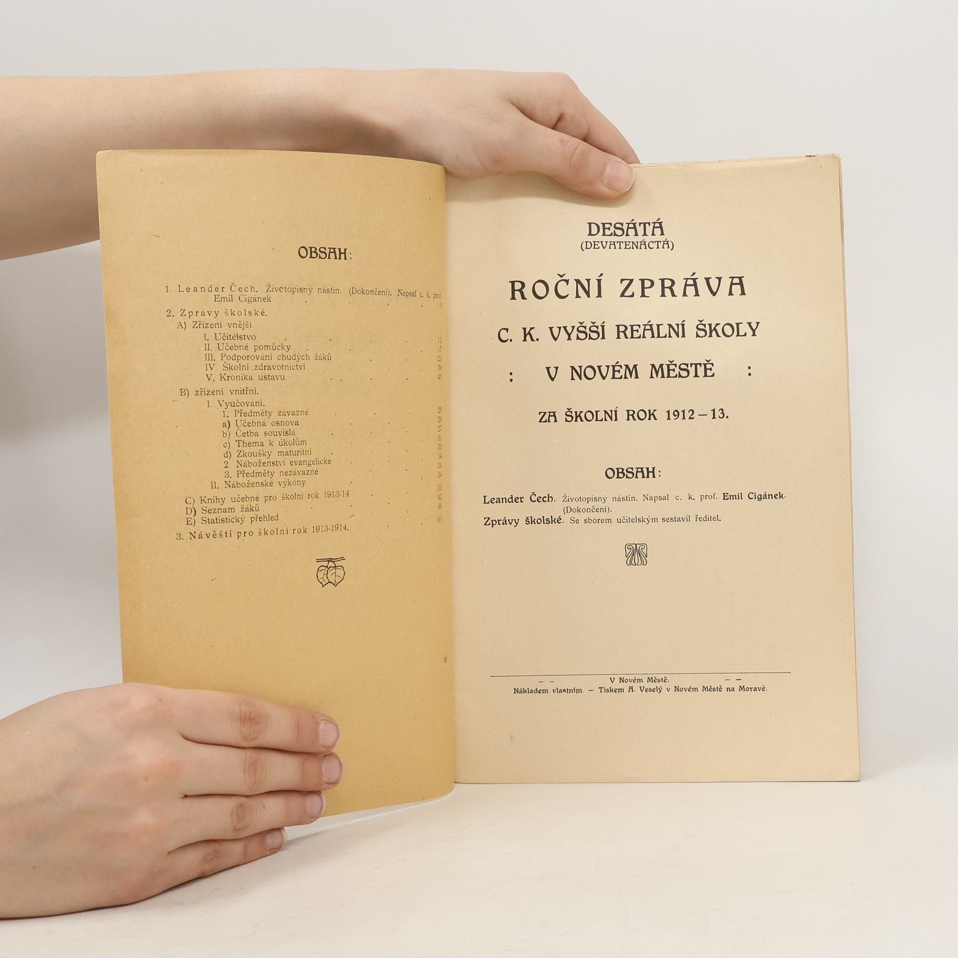Desátá roční zpráva C. K. vyšší reální školy v novém městě za školní rok 1912-13, Auteurscollectief