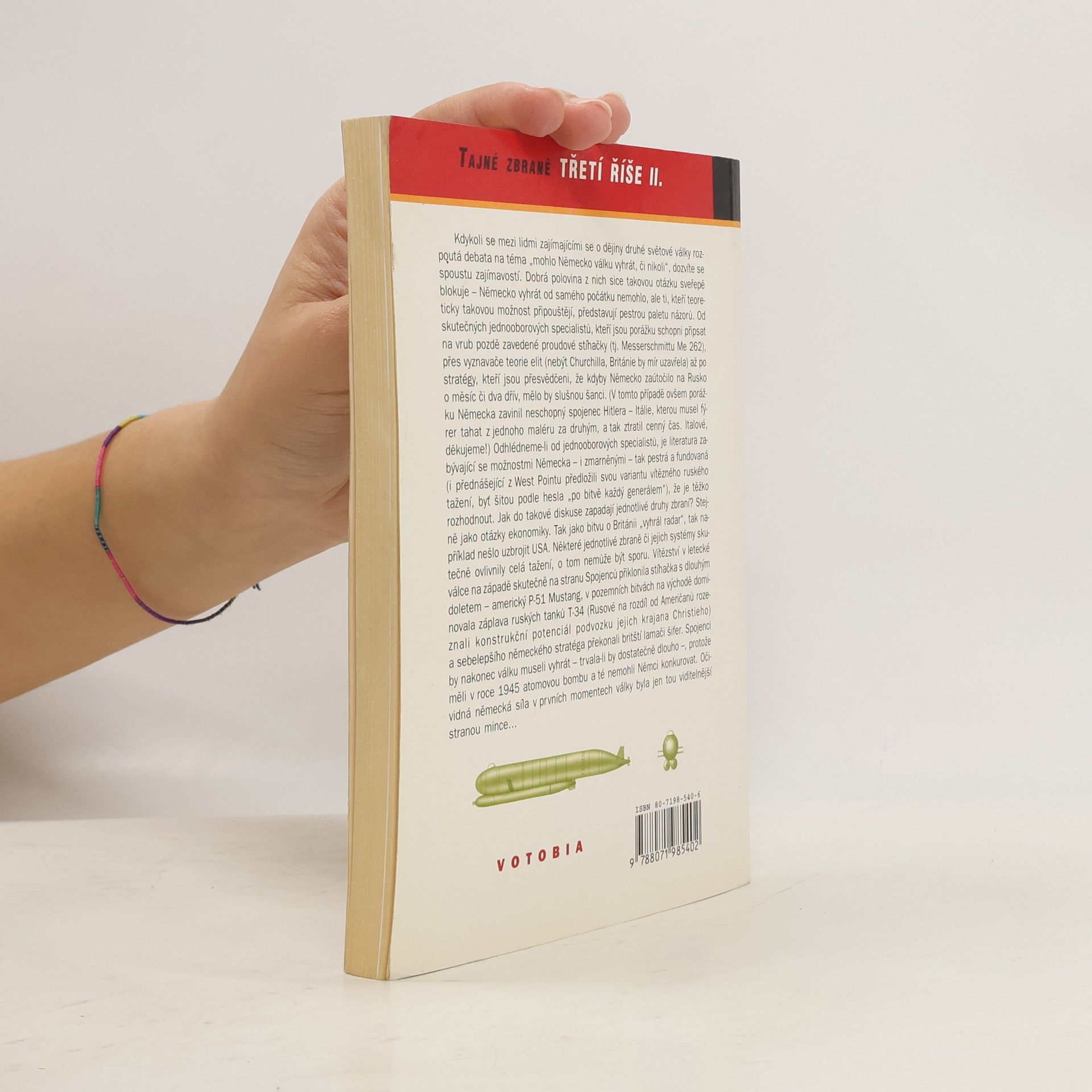 V letech 1939-1945 se v Německu vedle technicky zdařilých a pokročilých zbrojních projektů objevily i kuriozity, které rozhodně nemohly ovlivnit průběh 2. světové války. Dočteme se o vývoji, konstrukci a bojovém nasazení letounové střely V-1, nadějné raketové střely V-2, samonaváděcí protiletadlové střely Enzian, přímé předchůdkyně taktických a protitankových střel rakety X-4 či protilodní raketové pumy Henschel a mnoha dalších zbraní. Autor krátce popisuje i německý "Program U", projekt na výrobu jaderných zbraní. Fotografie, kresby, řezy, tabulky s technickými údaji Druhá část studie o mimořádně utajovaných vojenských projektech a konstrukcích,které vyvíjelo Německo za 2. světové války Je nesporné, že němečtí letečtí konstruktéři, stavitelé ponorek, ale i inženýři a technici z mnoha dalších oborů patřili k průkopníkům a špičce světového vývoje. Ale ani časnější nasazení prvního a nejvýkonnějšího proudového letounu 2. světové války Messerschmitt Me 262, nejmodernějších typů ponorek či dalších pokročilých zbrojních systémů by zřejmě, v protikladu k nesmírnému vědeckému a výrobnímu potenciálu Spojenců, neovlivnilo výsledek 2. světové války. Fotografie, kresby, řezy, schémata, seznam literatury. W1e 20030217 kyliank Studie se zabývá utajovanými vojenskými projekty, které realizovalo Německo za 2. světové války
