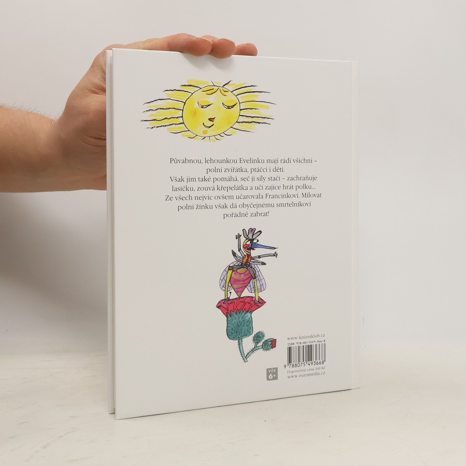 Půvabnou, lehounkou Evelínku mají rádi všichni - polní zvířátka, ptáčci i děti. Však jim také pomáhá, seč jí síly stačí - zachraňuje lasičku, zouvá křepelátka a učí zajíce hrát polku... Ze všech nejvíc ovšem učarovala Francínkovi. Milovat polní žínku však dá obyčejnému smrtelníkovi pořádně zabrat! Z nového vydání příběhů dýchne na malé i velké čtenáře laskavý svět českých pohádek.