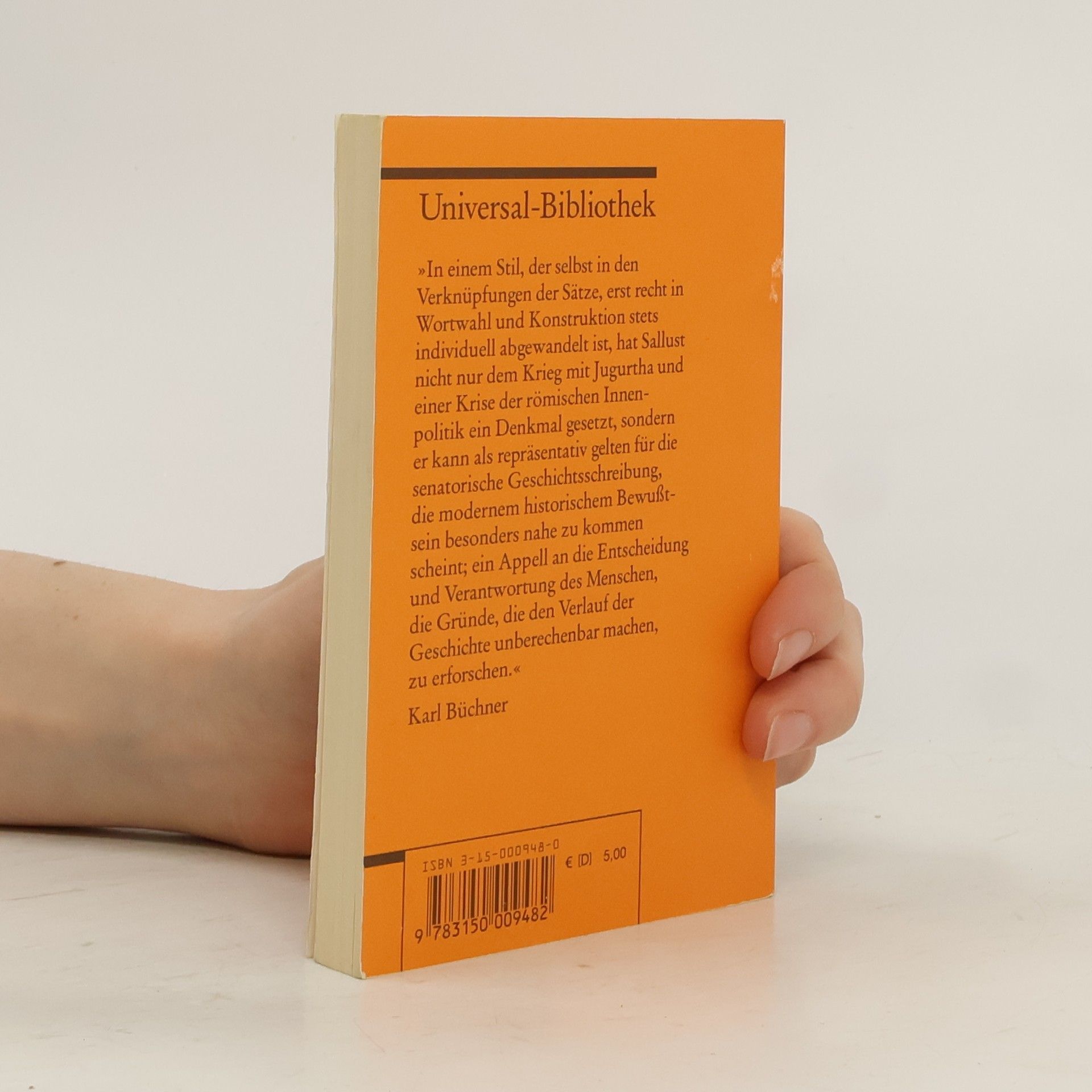 »In einem Stil, der selbst in den Verknüpfungen der Sätze, erst recht in Wortwahl und Konstruktion stets individuell abgewandelt ist, hat Sallust nicht nur dem Krieg mit Jugurtha und einer Krise der römischen Innenpolitik ein Denkmal gesetzt, sondern er kann als repräsentativ gelten für die senatorische Geschichtsschreibung, die modernem historischem Bewußtsein besonders nahe zu kommen scheint; ein Appell an die Entscheidung und Verantwortung des Menschen, die Gründe, die den Verlauf der Geschichte unberechenbar machen, zu erforschen.« – Karl Büchner