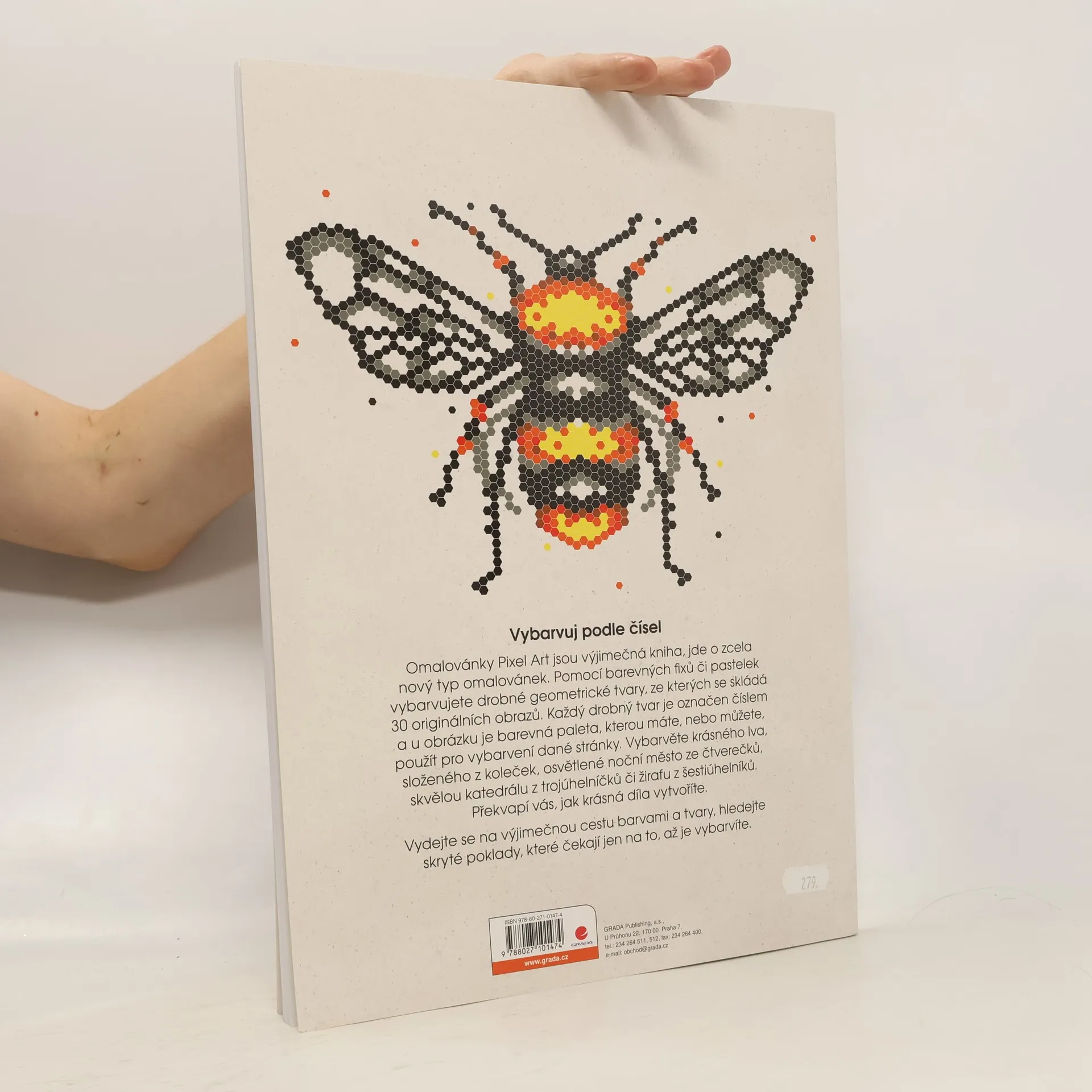 Každý drobný tvar je označen číslem a u obrázku je barevná paleta, kterou máte, nebo můžete, použít pro vybarvení dané stránky. Vybarvěte krásného lva, složeného z koleček, osvětlené noční město ze čtverečků, skvělou katedrálu z trojúhelníčků či žirafu z šestiúhelníků. Překvapí vás, jak krásné obrázky vytvoříte. Vydejte se na kouzelnou cestu barvami a tvary, hledejte skryté poklady, které čekají jen na to, až je vybarvíte. Stránky knihy jsou perforované, takže svá díla můžete snadno vytrhnout a vystavit.