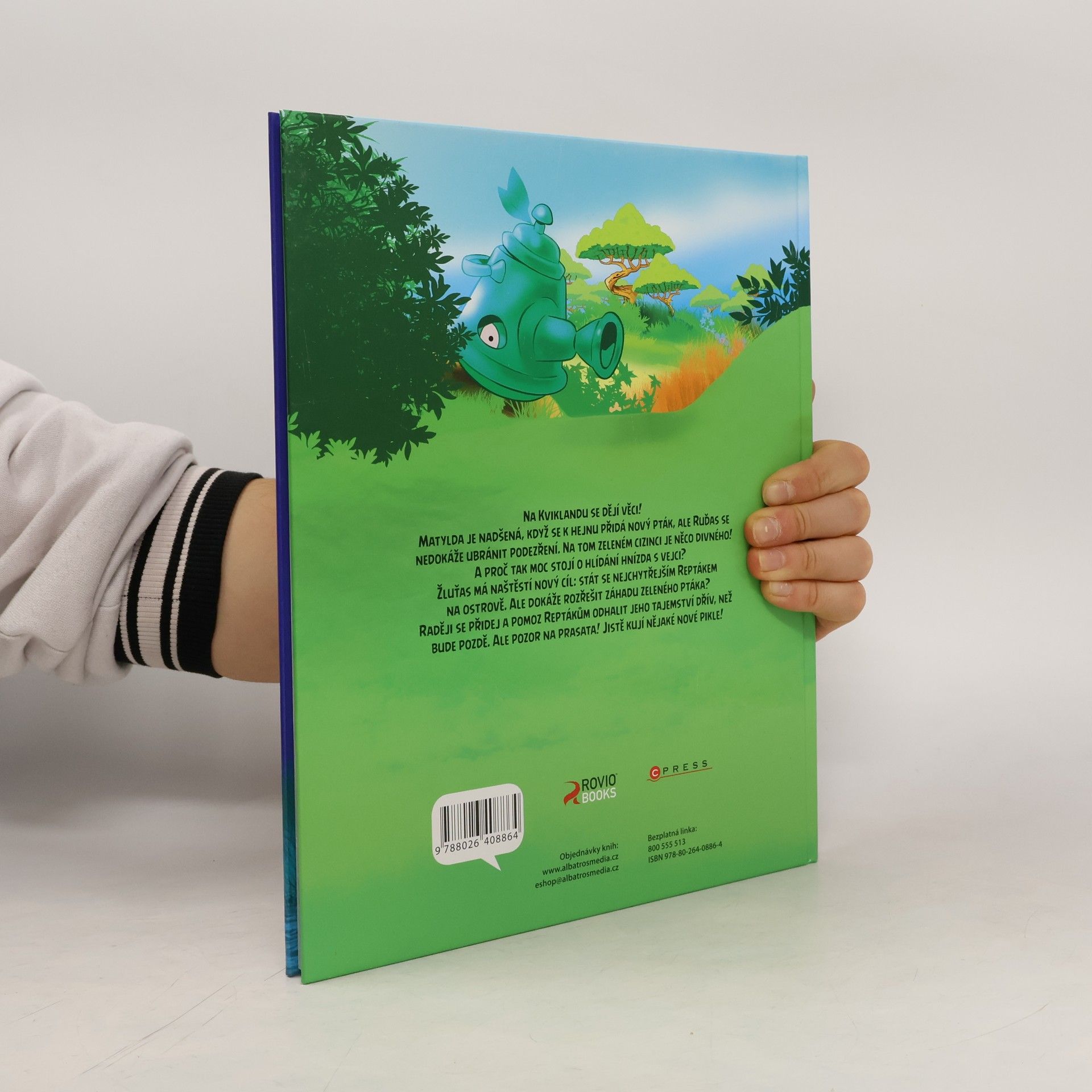 Na Kviklandu se dějí věci! Matylda je nadšená, když se k hejnu přidá nový pták, ale Ruďas se nedokáže ubránit podezření. Na tom zeleném cizinci je něco divného! A proč tak moc stojí o hlídání hnízda s vejci? Žluťas má naštěstí nový cíl: stát se nejchytřejším Reptákem na ostrově. Ale dokáže rozřešit záhadu zeleného ptáka?