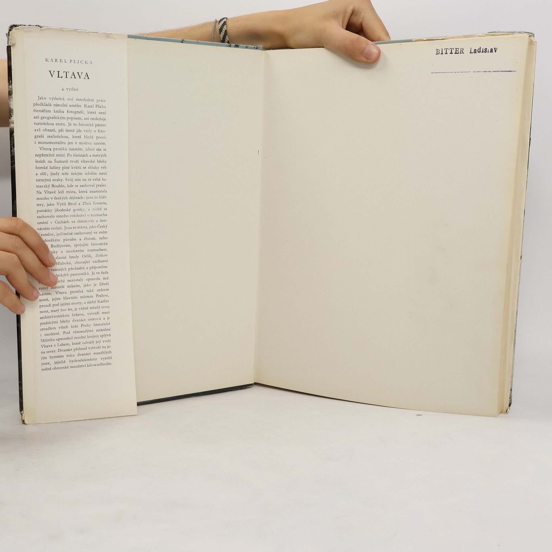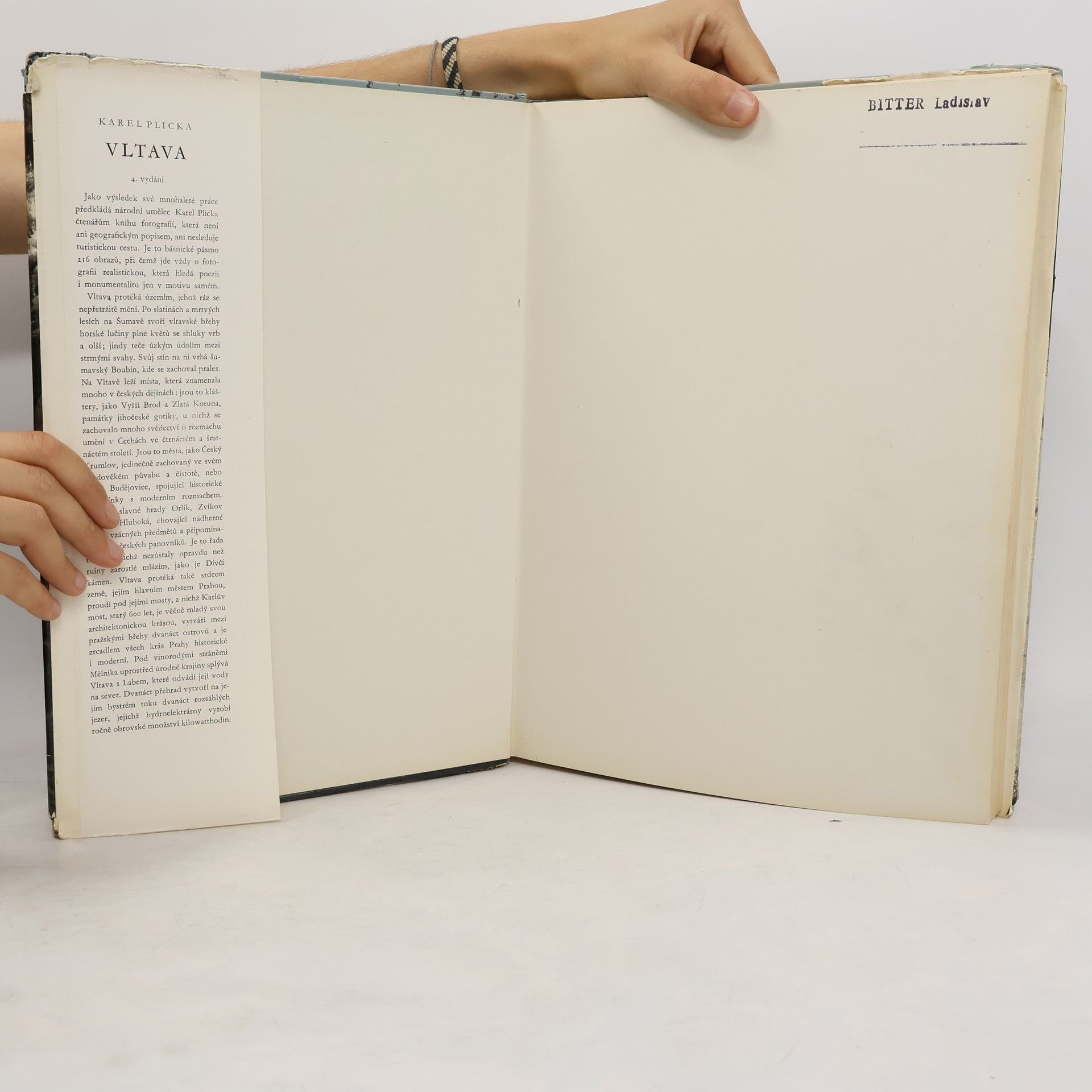 Album 216 celostránkových černobílých fotografií sleduje tok Vltavy od jejího vzniku až k soutoku s Labem. V pestrém sledu záběrů se střídají obrazy okolní přírody, peřejí, skal, pralesa s pohledy na města a hrady, na Český Krumlov, Zlatou Korunu, České Budějovice, Hlubokou, Zvíkov, Orlík, Prahu, Mělník aj.