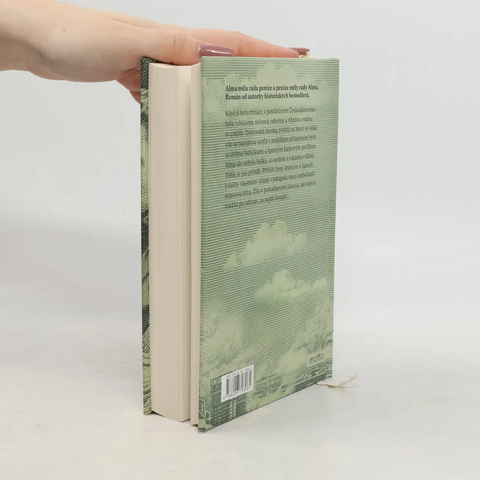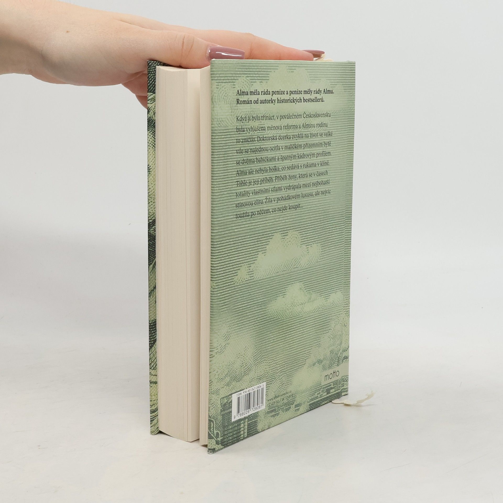 Alma měla ráda peníze a peníze měly rády Almu. Román od autorky historických bestsellerů. Když jí bylo třináct, v poválečném Československu byla vyhlášena měnová reforma a Alminu rodinu to zničilo. Doktorská dcerka zvyklá na život ve velké vile se najednou ocitla v maličkém přízemním bytě se dvěma babičkami a špatným kádrovým profilem. Alma ale nebyla holka, co sedává s rukama v klíně. Tohle je její příběh. Příběh ženy, která se v časech totality vlastními silami vydrápala mezi nejbohatší stínovou elitu. Žila v pohádkovém luxusu, ale nejvíc toužila po něčem, co nejde koupit…