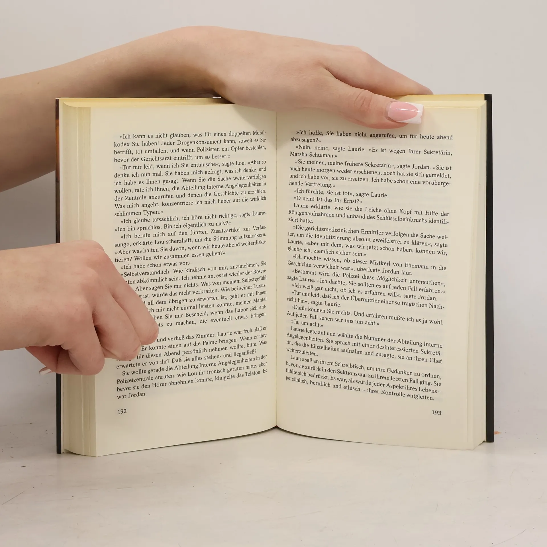 Die junge Pathologin Laurie Montgomery arbeitet am New Yorker Gerichtsmedizinischen Institut. Als sie mehrere Drogentote obduziert, die alle aus den besten Kreisen stammen, drängt sich ihr die Überzeugung auf: Das Kokain, das sich die Toten infiziert haben, muß aus derselben Quelle stammen und verunreinigt sein. Laurie bittet ihren Chef, die Öffentlichkeit zu warnen. Doch dieser lehnt ab. Einer der Toten ist Duncan Andrews, dessen Vater für den Senat kandidiert und seine Beziehungen spielen ließt, damit nichts über die wahre Todesursache nach außen dringt. Auch Lou Soldano vom Morddezernat winkt ab, als Laurie mit ihm über ihre Theorie spricht. Ihn interessieren Drogentote nicht, er hat genug damit zu tun, eine Serie von geheimnisvollen Morden aufzuklären, die an wohlanständigen Bürgern verübt wurden. So versucht Laurie, auf eigene Faust hinter das Geheimnis zu kommen. Eine heiße Spur führt in den Operationssaal eines Spezialisten für Hornhautverpflanzungen. Als sich herausstellt, daß die Drogentoten alle Organspender waren, und als auch Lou die Lösung seiner Fälle vor Augen hat, gerät Laurie in tödliche Gefahr.