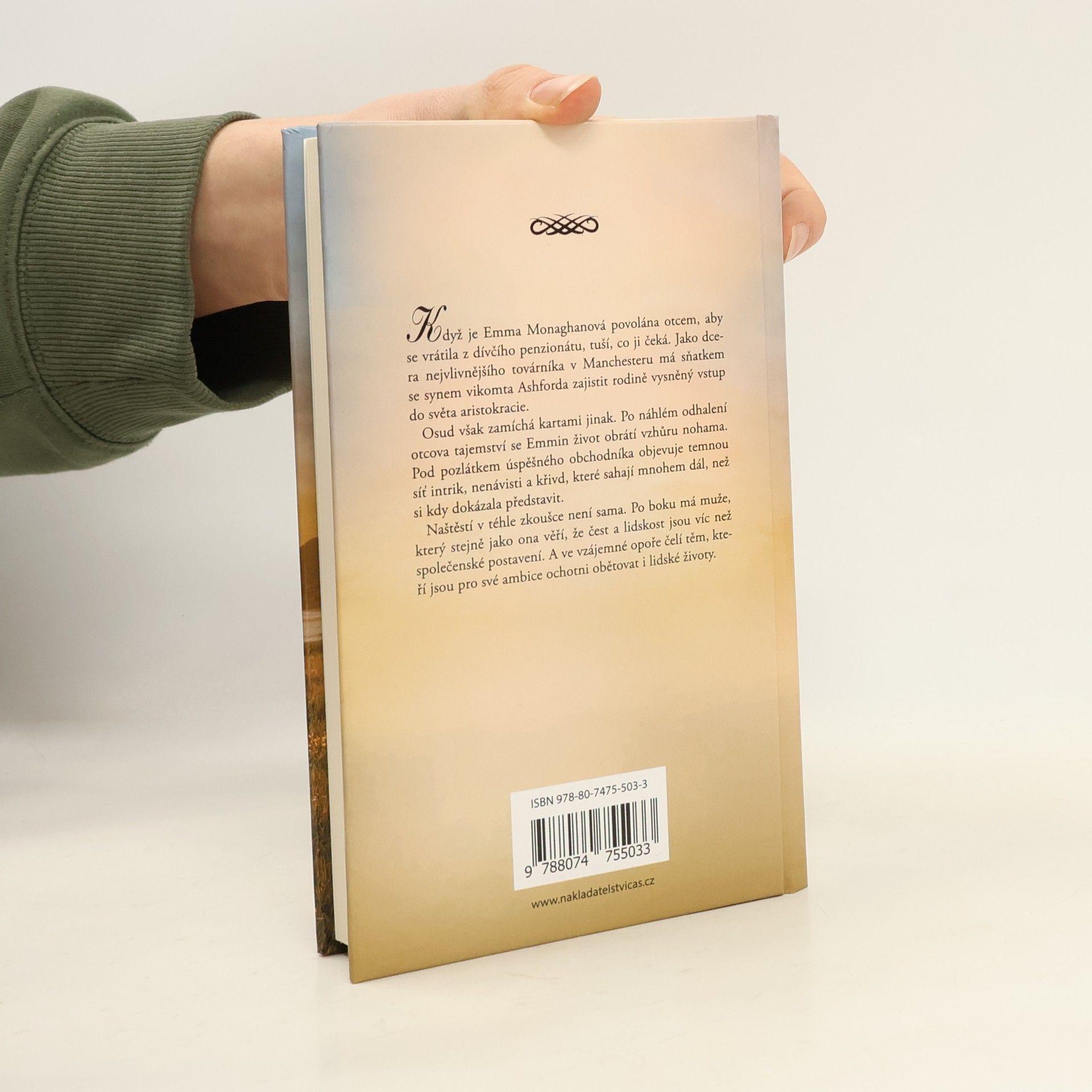 Když je Emma Monaghanová povolána otcem, aby se vrátila z dívčího penzionátu, tuší, co ji čeká. Jako dcera nejvlivnějšího továrníka v Manchesteru má sňatkem se synem vikomta Ashforda zajistit rodině vysněný vstup do světa aristokracie. Osud však zamíchá kartami jinak. Po náhlém odhalení otcova tajemství se Emmin život obrátí vzhůru nohama. Pod pozlátkem úspěšného obchodníka objevuje temnou síť intrik, nenávisti a křivd, které sahají mnohem dál, než si kdy dokázala představit. Naštěstí v téhle zkoušce není sama. Po boku má muže, který stejně jako ona věří, že čest a lidskost jsou víc než společenské postavení. A ve vzájemné opoře čelí těm, kteří jsou pro své ambice ochotni obětovat i lidské životy.