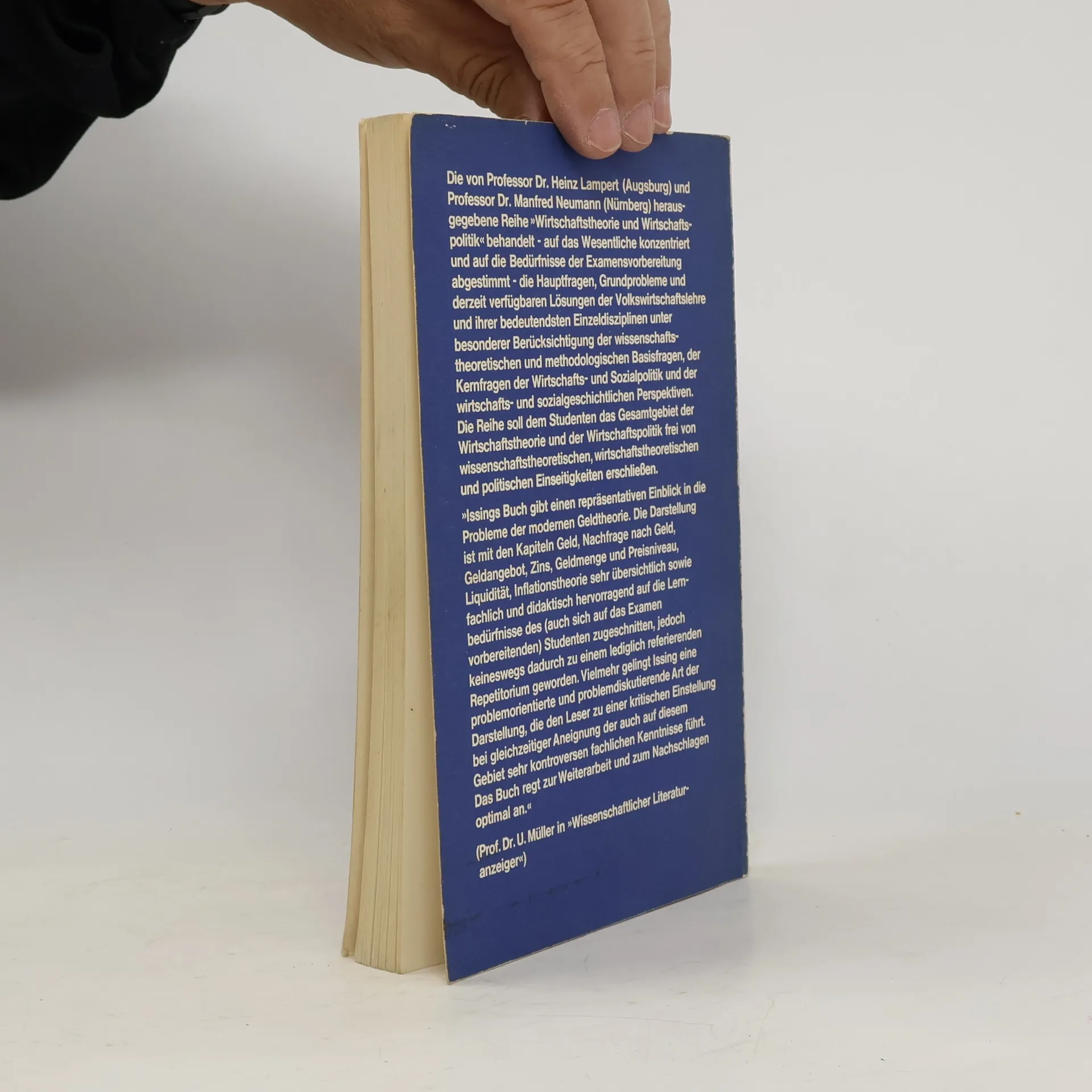Die „Geldtheorie“ des früheren Würzburger Ordinarius sowie Mitglieds des Sachverständigenrates und heutigen Direktoriummitglieds der Europäischen Zentralbank ist eines der erfolgreichsten Lehrbücher dieser Art. Bei aller Aktualisierung ist dieses Werk seinem Vorsatz stets treu geblieben, den Stand der modernen Geldtheorie in möglichst einfacher und konzentrierter Form darzustellen. Der Band gibt den Studenten eine hilfreiche Orientierung in der Diskussion zwischen Keynesianern, Monetaristen und Liquiditätstheoretikern. Die Neuauflage ist an vielen Stellen ergänzt, z. B. zum Thema Geldmengenabgrenzung. Für Dozenten, Studenten und Bankkaufleute