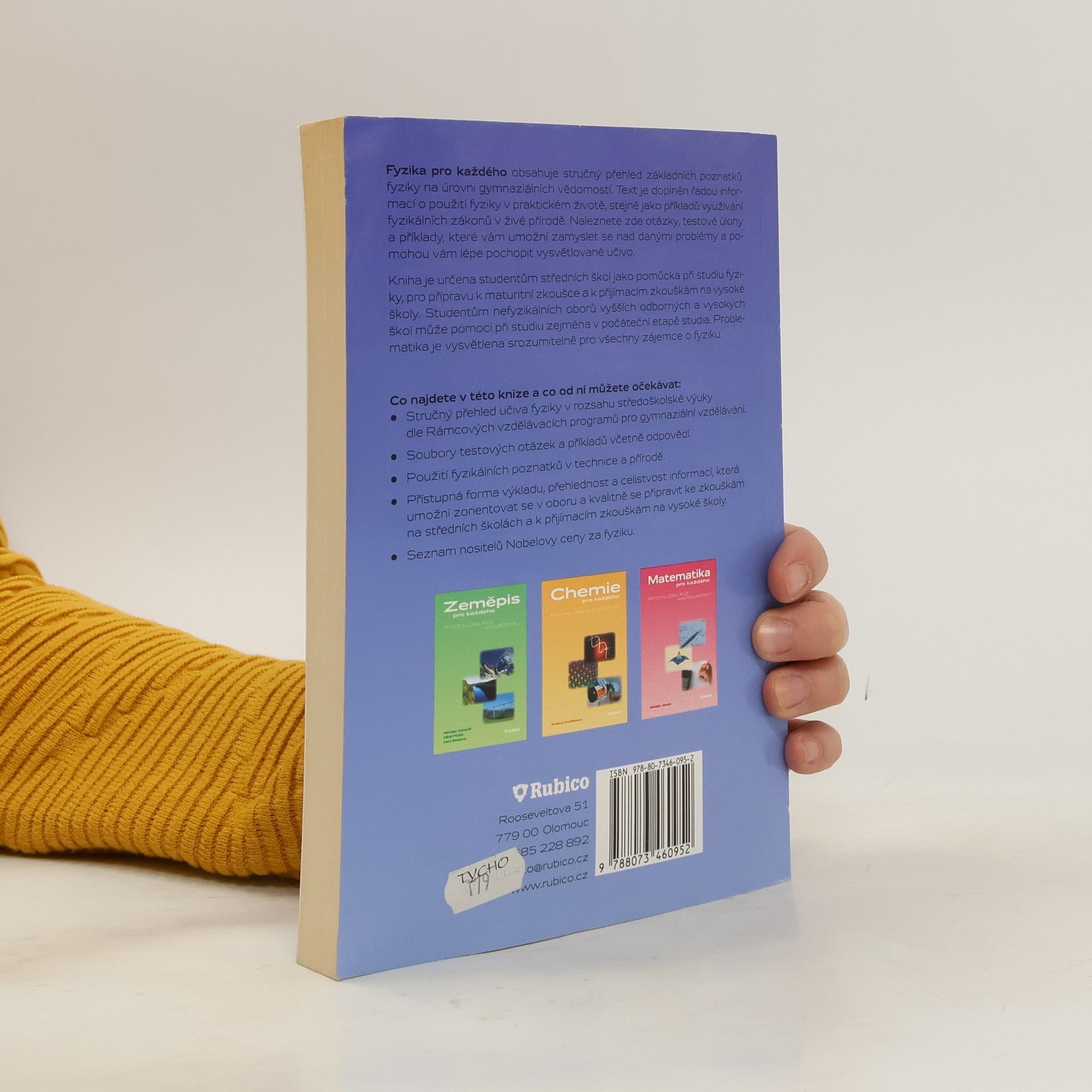 Fyzika pro každého obsahuje stručný přehled základních poznatků fyziky na úrovni gymnaziálních vědomostí. Text je doplněn řadou informací o použití fyziky v praktickém životě, stejně jako příkladů využívání fyzikálních zákonů v živé přírodě. Naleznete zde otázky, testové úlohy a příklady, které vám umožní zamyslet se nad danými problémy a pomohou vám lépe pochopit vysvětlované učivo. Kniha je určena studentům středních škol jako pomůcka při studiu fyziky, pro přípravu k maturitní zkoušce a k přijímacím zkouškám na vysoké školy. Studentům nefyzikálních oborů vyšších odborných a vysokých škol může pomoci při studiu zejména v počáteční etapě studia. Problematika je vysvětlena srozumitelně pro všechny zájemce o fyziku.