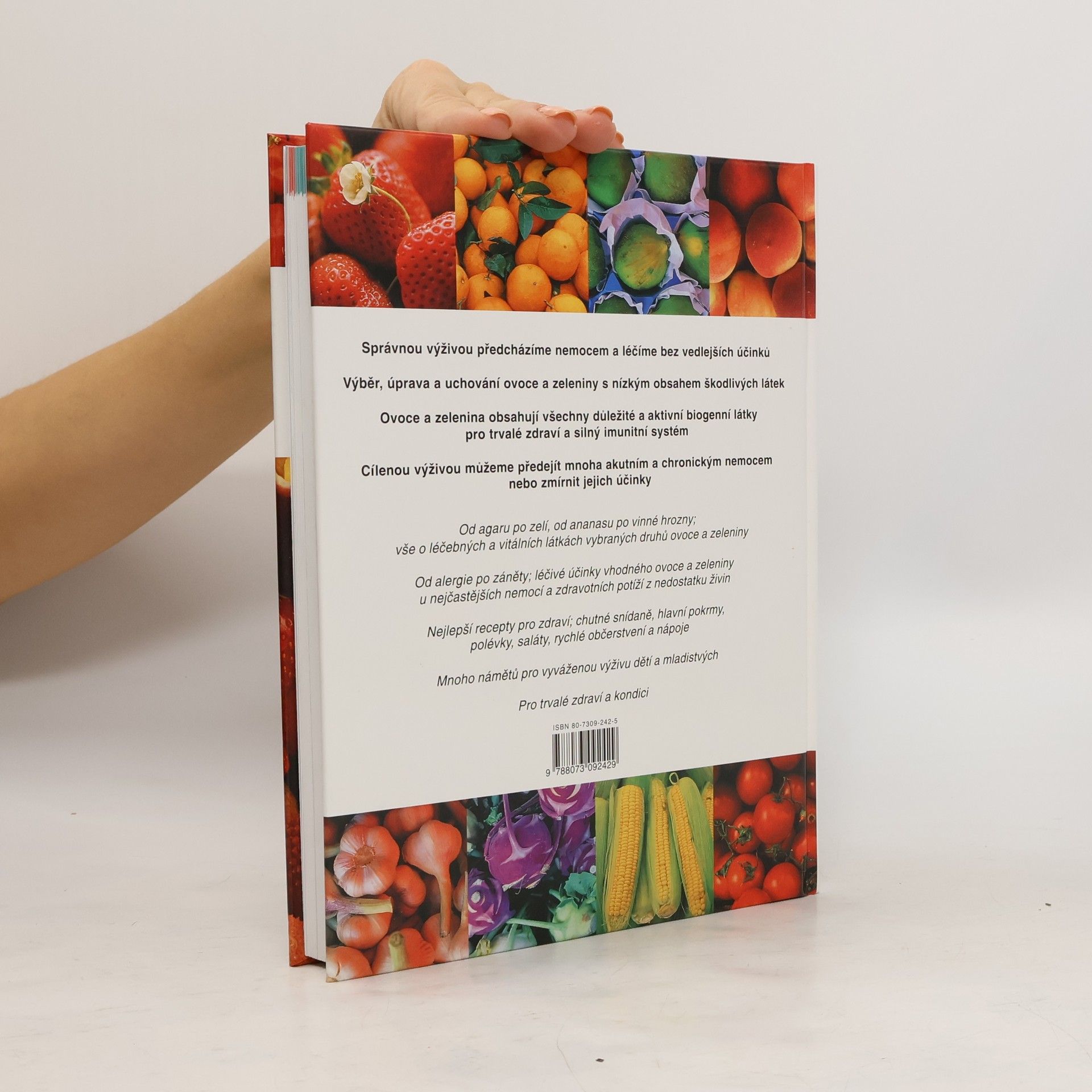 Stále ještě věříte, že léky můžete získat jen v lékárně? Pak vám uniklo, co v posledních letech s pomocí nejmodernější techniky zjistili biochemici- ovoce a zelenina obsahují mnohé léčivé látky, které v nejrůznějším složení poskytují pomoc téměř proti každé nemoci. Rostliny v mnoho miliónů let trvajícím procesu vyvinuly účinné látky aby samy přežily, a ty teď pomáhají člověku, jenž rostliny konzumuje.Tento poznatek ovšem vůbec není takový, jak by se zdálo. Člověk je přece přírodou vybaven k tomu, aby se živil především rostlinami a teprve potom masem.Na rozdíl od některých zvířat není schopen vytvářet životně důležitý vitamín C ve vlastním těle- je odkázán na jeho příjem ve stravě.Člověku totiž dodávají některé vitaminy, minerální látky a další životně důležité živiny pouze ovoce a zelenina.