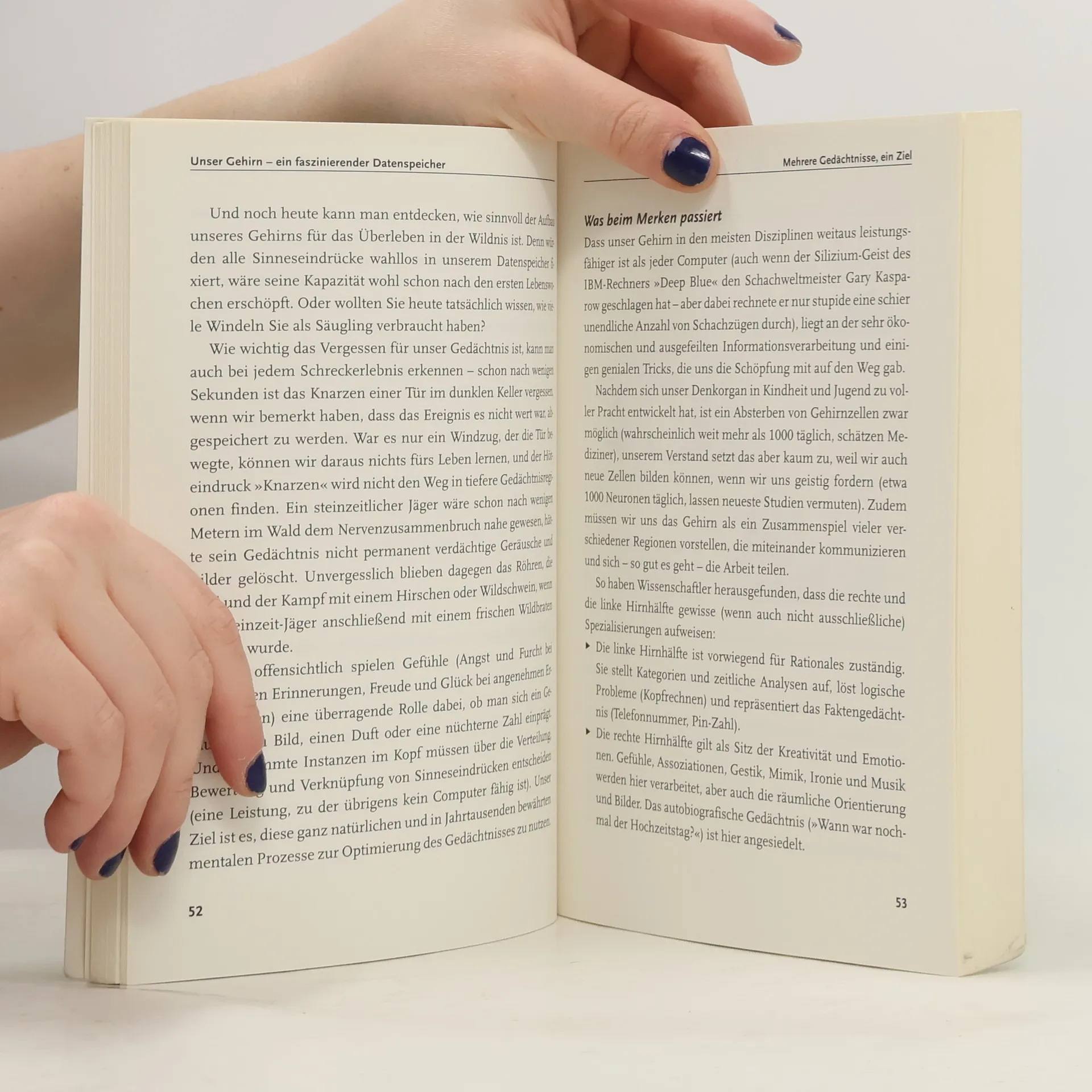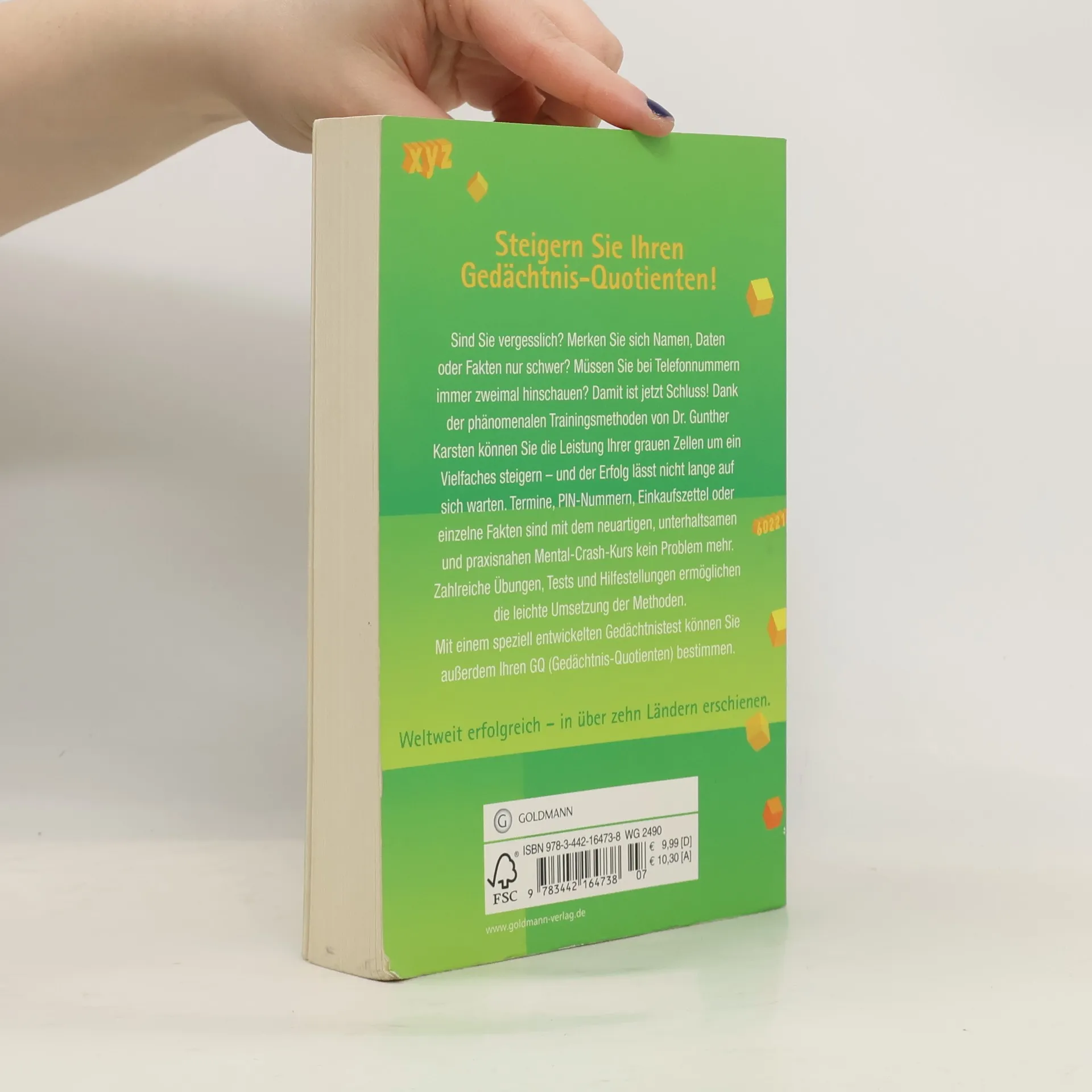 Vom Gedächtnisweltmeister Wie war die Nummer doch gleich? Woher kenne ich bloß dieses Gesicht? Und wo sind schon wieder die Autoschlüssel? Für alle, die ihr Gedächtnis öfter mal im Stich lässt, gibt es jetzt das Mentaltraining von und mit Gedächtnis-Meister Gunther Karsten. Seine neuartigen Memo-Techniken bringen die grauen Zellen auf Trab und steigern die Gedächtnisleistung um mehrere hundert Prozent. Schon nach wenigen Stunden zeigen sich deutliche Fortschritte, und bald gehören lange Einkaufszettel, vergessene Pins und verpasste Termine der Vergangenheit an. Dr. Gunther Karsten ist vielfacher deutscher Gedächtnismeister und Gedächtnisweltmeister. 2023 wurde er Senioren-Gedächtnisweltmeister. Seine enormen Fähigkeiten beruhen auf Techniken, die er sich vor Jahren selbst angeeignet und stetig weiterentwickelt hat. Er ist ein weltweit gefragter Gedächtnistrainer. Einem breiten Publikum wurde Dr. Karsten durch zahlreiche TV-Auftritte, wie bei Harald Schmidt oder J. B. Kerner, bekannt. Ausstattung: 30 s/w Illustrationen