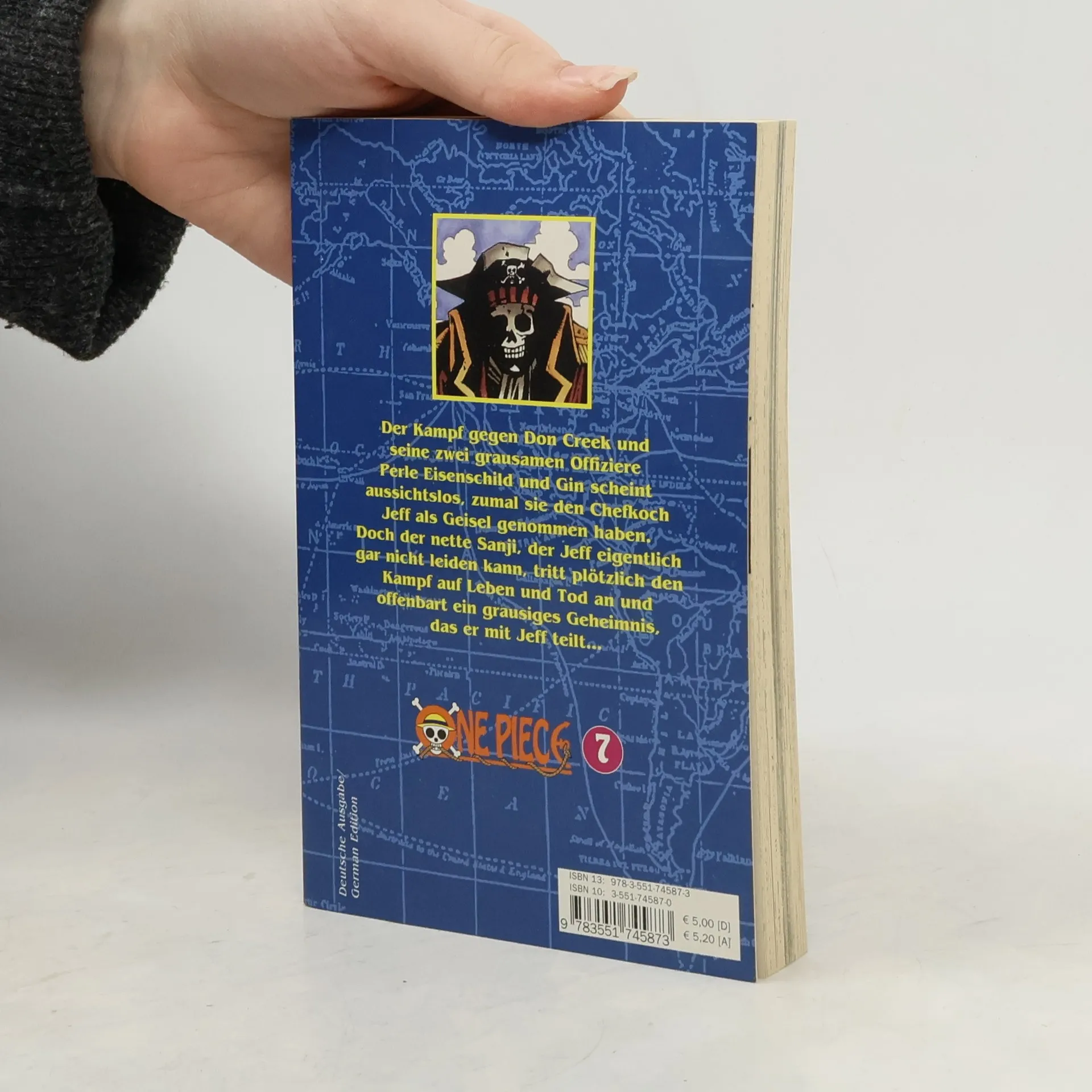 Der beliebteste Manga der Welt! Erlebe die Geschichte des zukünftigen Königs der Piraten in einer unvergleichlichen Geschichte voller Action, Abenteuer, Dramatik, Freundschaft und Humor. Mit über 500 Millionen verkauften Bänden weltweit ist One Piece die meistverkaufte Mangaserie der Geschichte! Der Kampf gegen Don Creek und seine zwei grausamen Offiziere Perle Eisenschild und Gin scheint aussichtslos, zumal sie den Chefkoch Jeff als Geisel genommen haben. Doch der nette Sanji, der Jeff eigentlich gar nicht leiden kann, tritt plötzlich den Kampf auf Leben und Tod an und offenbart ein grausiges Geheimnis, das er mit Jeff teilt... Für Fans von Naruto, Dragon Ball, My Hero Academia und Fairy Tail!