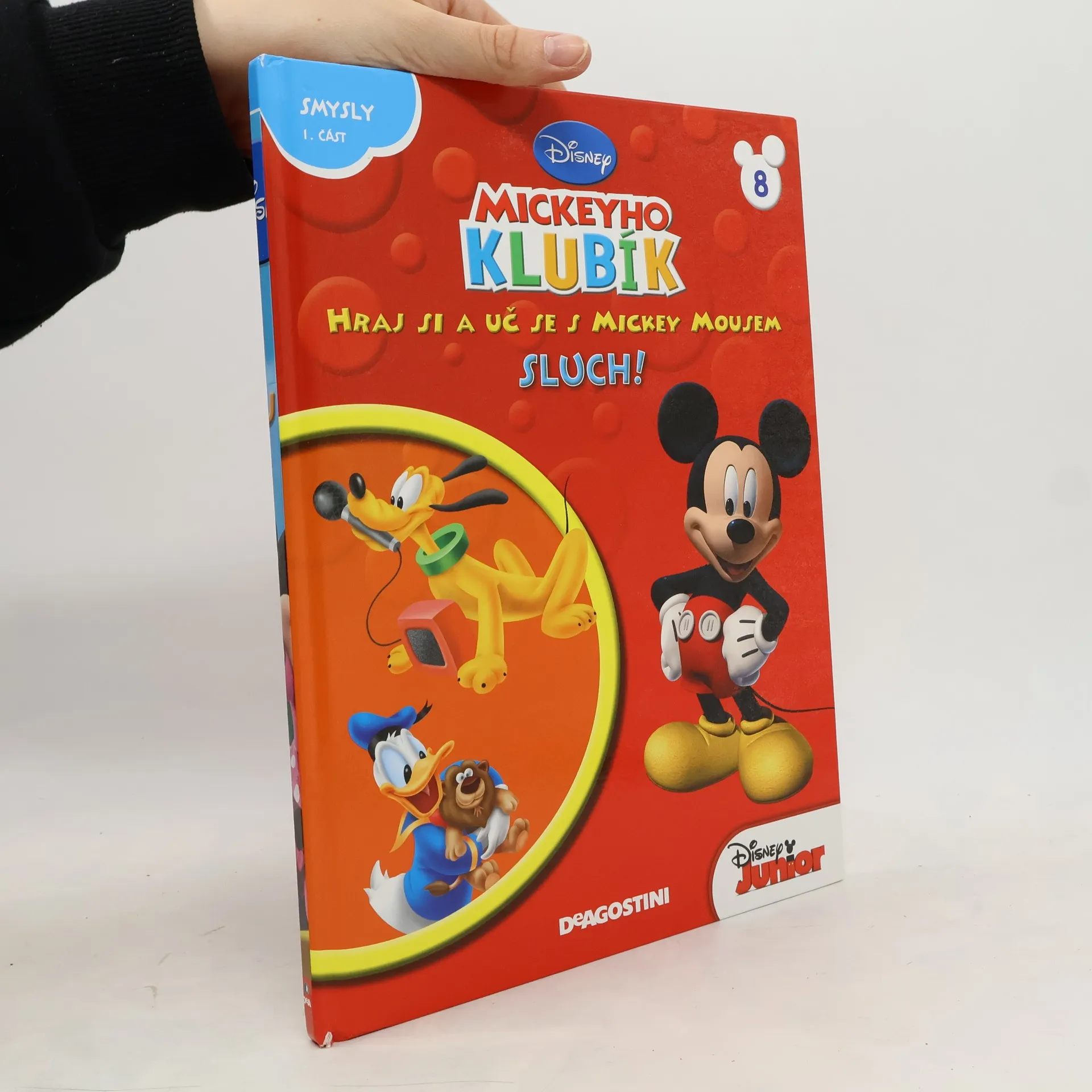 Disney – Mickeyho klubík. Hraj si a uč se s Mickey Mousem. Smysly 1. část Sluch. V této knížečce najdete zábavný příbeh, v němž Donald ztratí svého oblíbeného plyšového lva a musí ho najít pomocí sluchu.