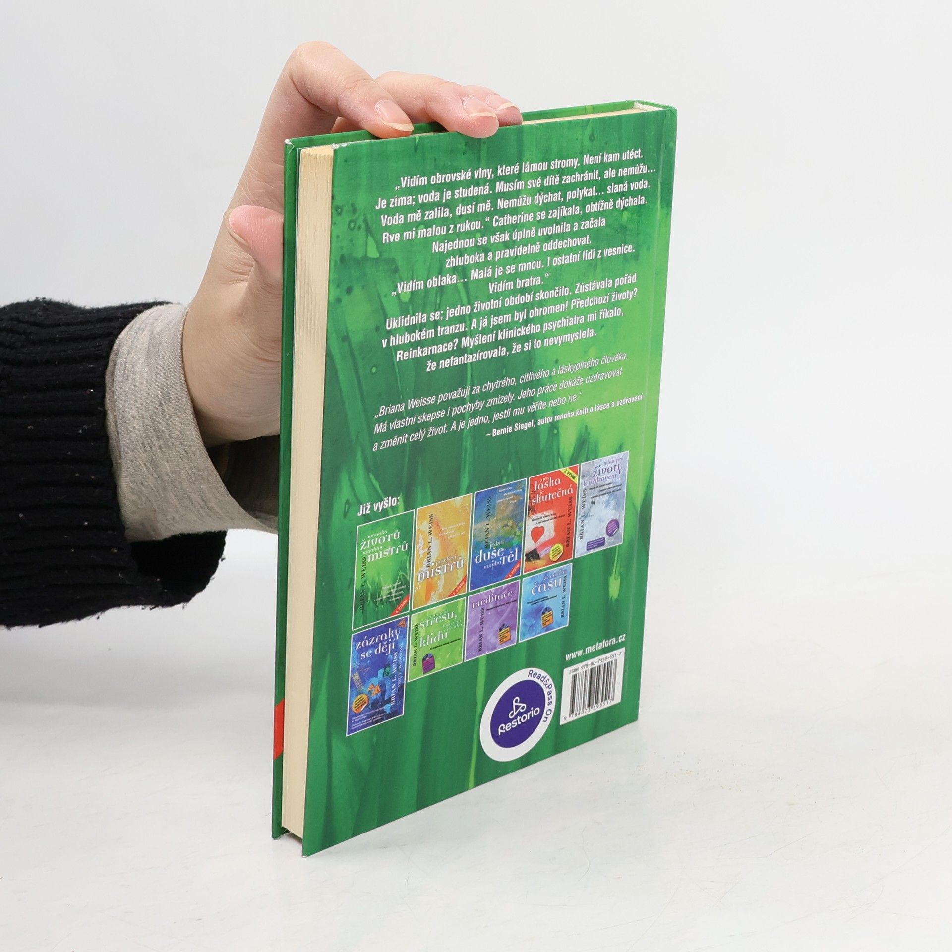 Fascinující výpověď o minulých životech a o tom, kdo nás vlastně vede a ochraňuje. Autor téhle knížky měl zavedenou psychiatrickou praxi, spokojené manželství a klidný život. To všechno ovšem jen do chvíle, než do jeho ordinace vstoupila Catherine, mladá žena trpící úzkostí a děsem z celého světa. Když nepomohla standardní terapie, rozhodl se její lékař přistoupit k hypnóze. Jaké však bylo jeho překvapení, když pacientka místo zážitků z raného dětství začala popisovat situace, lidi a události, které se odehrály dávno před jejím narozením.Catherine v hypnotickém stavu doslova cestovala časem, od prehistorických jeskyní přes paláce starověkého Egypta až do soudobých válečných časů. Jenže to ještě nebylo všechno. Catherine se dostala do jakéhosi „bezčasí mezi životy“, odkud přinášela vzkazy od vyspělých duchovních bytostí, Mistrů, kteří bdí nejen nad námi, ale nejspíš i nad celým světem… Dr. Weiss nabyl jistoty, že to, co se před jeho očima odehrává, je prostě pravda, a jako první se pokusil skloubit fenomén až dosud odkazovaný do říše fantazie s věcnou a chladnokrevnou vědou.
