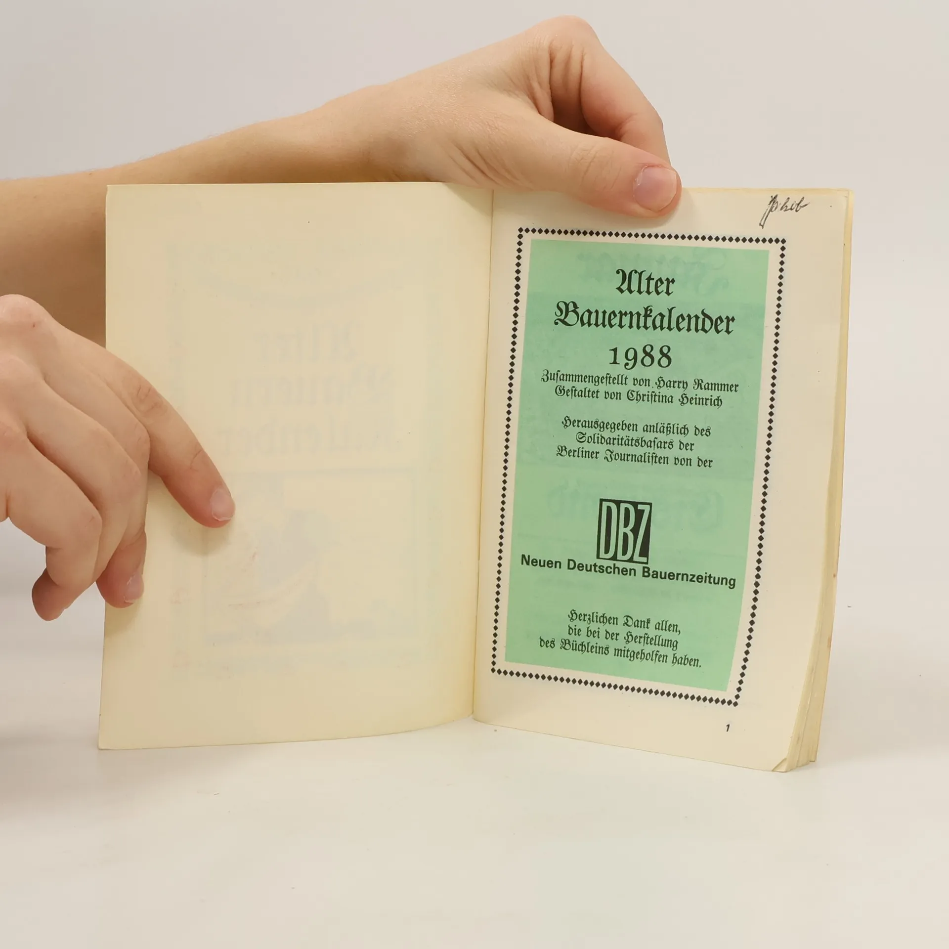 Alter Bauernkalender 1988