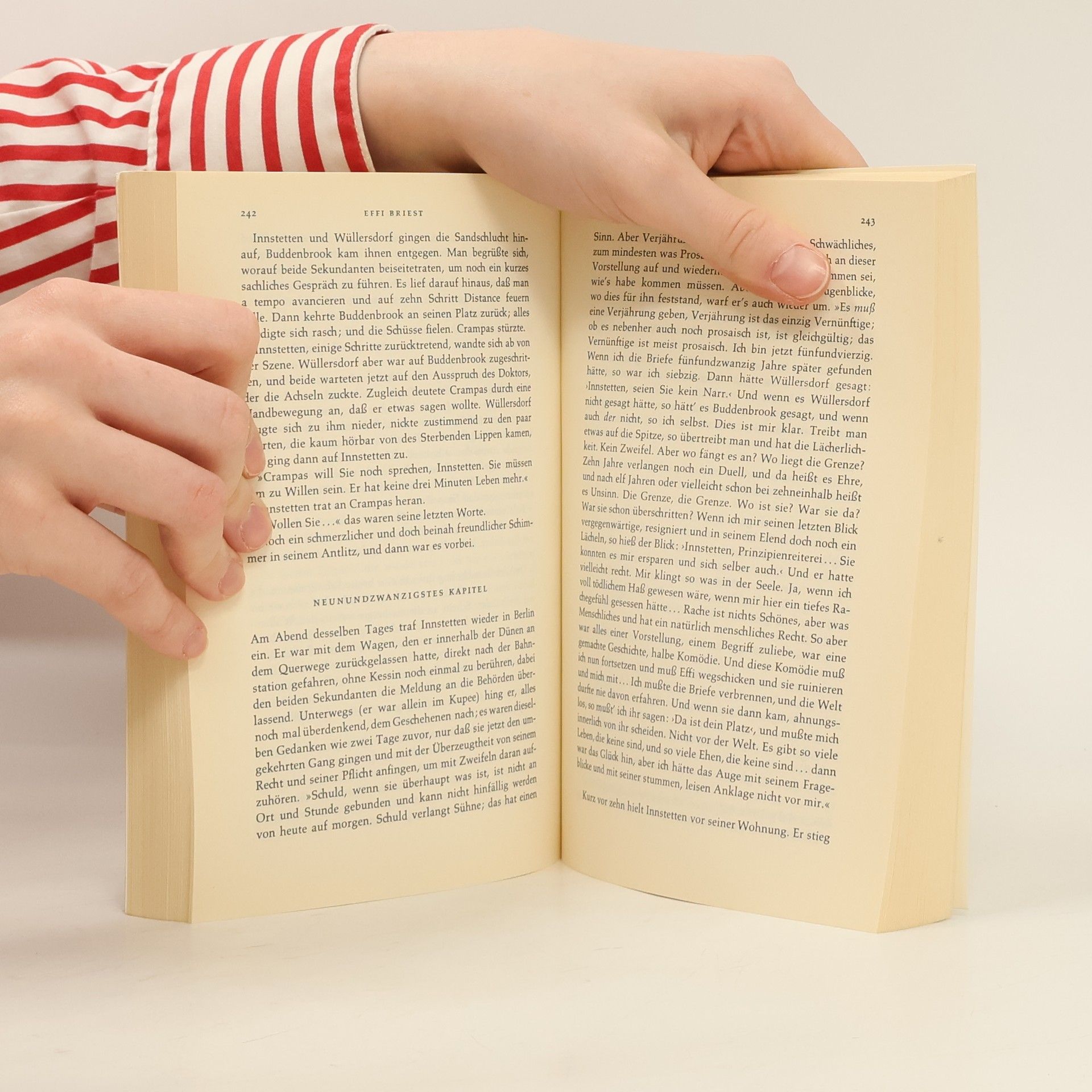 Theodor Fontanes berühmtester Roman erzählt vom Schicksal einer jungen Adeligen, deren kleiner Ausbruchsversuch aus einer konventionellen Ehe mit einem älteren Mann Jahre danach entdeckt wird und tödlich endet. "Eine Romanbibliothek der rigorosesten Auswahl, und beschränkte man sie auf ein Dutzend Bände, auf zehn, auf sechs, - sie dürfte 'Effi Briest' nicht vermissen lassen." Thomas Mann