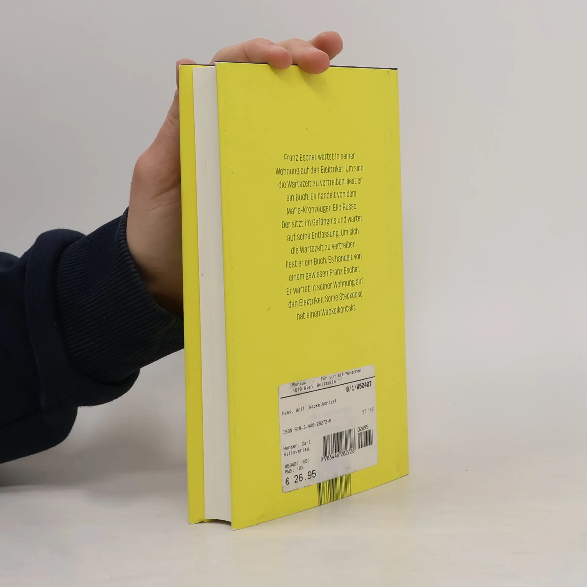 Funkenschlagend und spannend bis zum finalen Kurzschluss – »der neue Wolf Haas ist ein Wunder. Bitte ganz unbedingt lesen.« Adam Soboczynski, Die Zeit Franz Escher wartet auf den Elektriker. Seine Steckdose hat einen Wackelkontakt. Um sich die Zeit zu vertreiben, liest er ein Buch über den Mafia-Kronzeugen Elio Russo. Elio sitzt im Gefängnis und wartet auf die Entlassung. Er hat so viele Leute verraten, dass er um sein Leben fürchtet. Aus Angst liegt er nachts wach und liest ein Buch. Es handelt von Franz Escher. Der wartet auf den Elektriker. Seine Steckdose hat einen Wackelkontakt. Wolf Haas' neuer Roman zündet ein erzählerisches Feuerwerk: Was beginnt wie zwei halbwegs übersichtliche Lebensgeschichten, verwirbelt sich zu einem schwindelerregenden Tanz - mit einem toten Handwerker, familiären Verstrickungen und vielen ungelösten Geheimnissen, funkenschlagend und spannend bis zum finalen Kurzschluss.