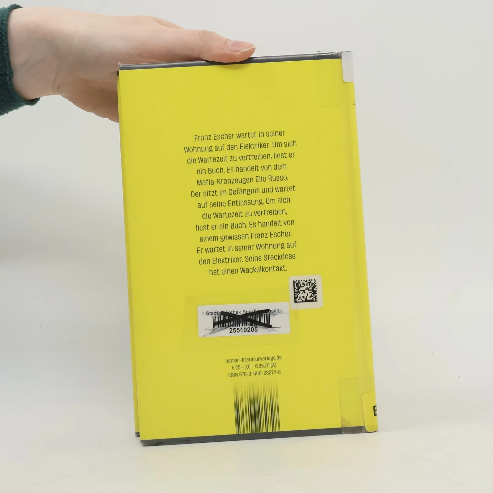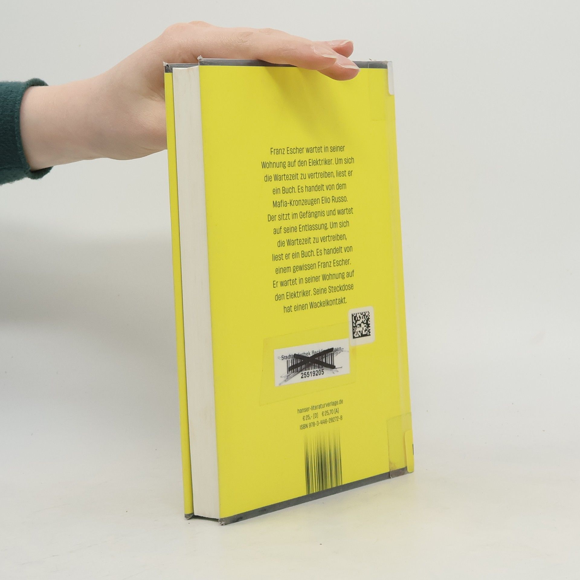 Funkenschlagend und spannend bis zum finalen Kurzschluss – »der neue Wolf Haas ist ein Wunder. Bitte ganz unbedingt lesen.« Adam Soboczynski, Die Zeit Franz Escher wartet auf den Elektriker. Seine Steckdose hat einen Wackelkontakt. Um sich die Zeit zu vertreiben, liest er ein Buch über den Mafia-Kronzeugen Elio Russo. Elio sitzt im Gefängnis und wartet auf die Entlassung. Er hat so viele Leute verraten, dass er um sein Leben fürchtet. Aus Angst liegt er nachts wach und liest ein Buch. Es handelt von Franz Escher. Der wartet auf den Elektriker. Seine Steckdose hat einen Wackelkontakt. Wolf Haas' neuer Roman zündet ein erzählerisches Feuerwerk: Was beginnt wie zwei halbwegs übersichtliche Lebensgeschichten, verwirbelt sich zu einem schwindelerregenden Tanz - mit einem toten Handwerker, familiären Verstrickungen und vielen ungelösten Geheimnissen, funkenschlagend und spannend bis zum finalen Kurzschluss.