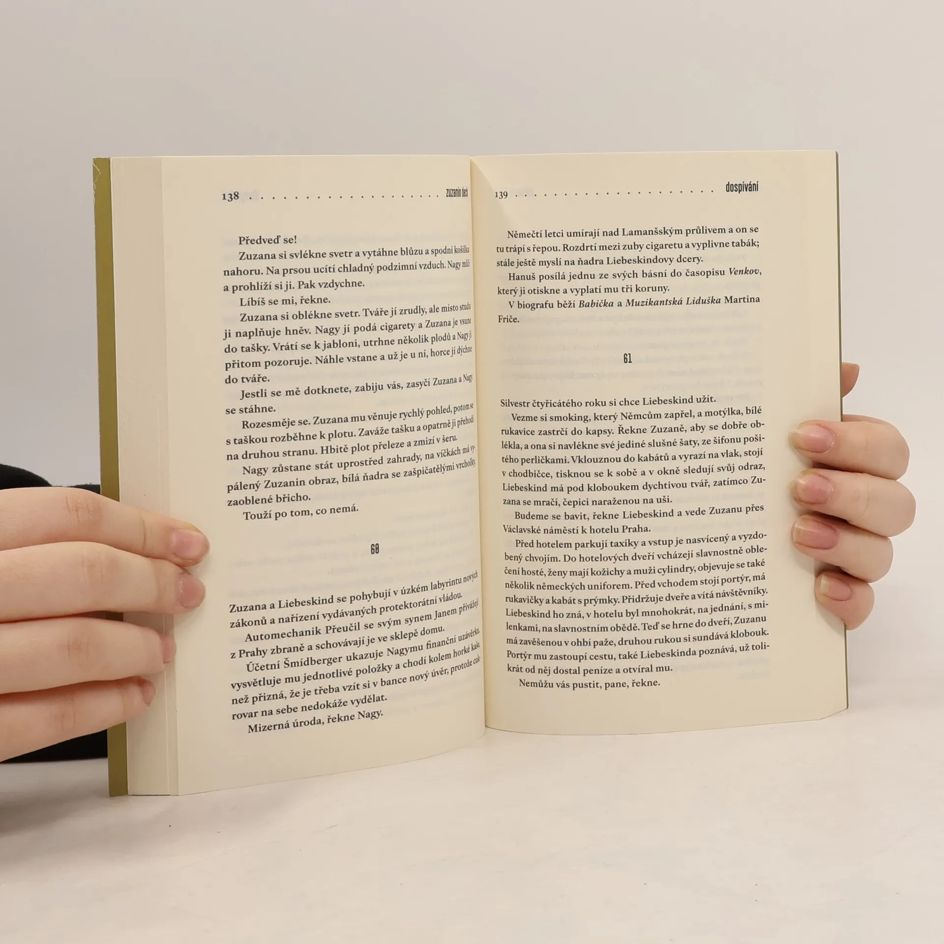 Co všechno udrží člověka při životě…Jsou tři. Zpočátku děti. Svět je v rovnováze. Později se všechno změní. Ona miluje jednoho z nich, ji milují oba dva. Zuzana Liebeskindová je dcera cukrovarníka. Nic jí nechybí, kráčí životem lehce, obklopena láskou. Vzduchem se vznášejí vlákna přepáleného cukru. Třicátá léta dvacátého století v malém městečku Holašovice jsou sladká. Teprve během německé okupace začne Zuzana dospívat. Bolestně vrůstá do dějin a dějiny se vpisují do ní. Protože má židovský původ, její osud je předem daný. Transport. Koncentrační tábor. Zuzanini přátelé Hanuš a Jan zůstávají v Holašovicích. Jejich cesty se však rozcházejí. Po skončení války se Zuzana vrací z koncentračního tábora, ztráty jsou ale větší, než čekala. Dokáže po všem, co prožila, ještě milovat? A má vůbec na výběr?