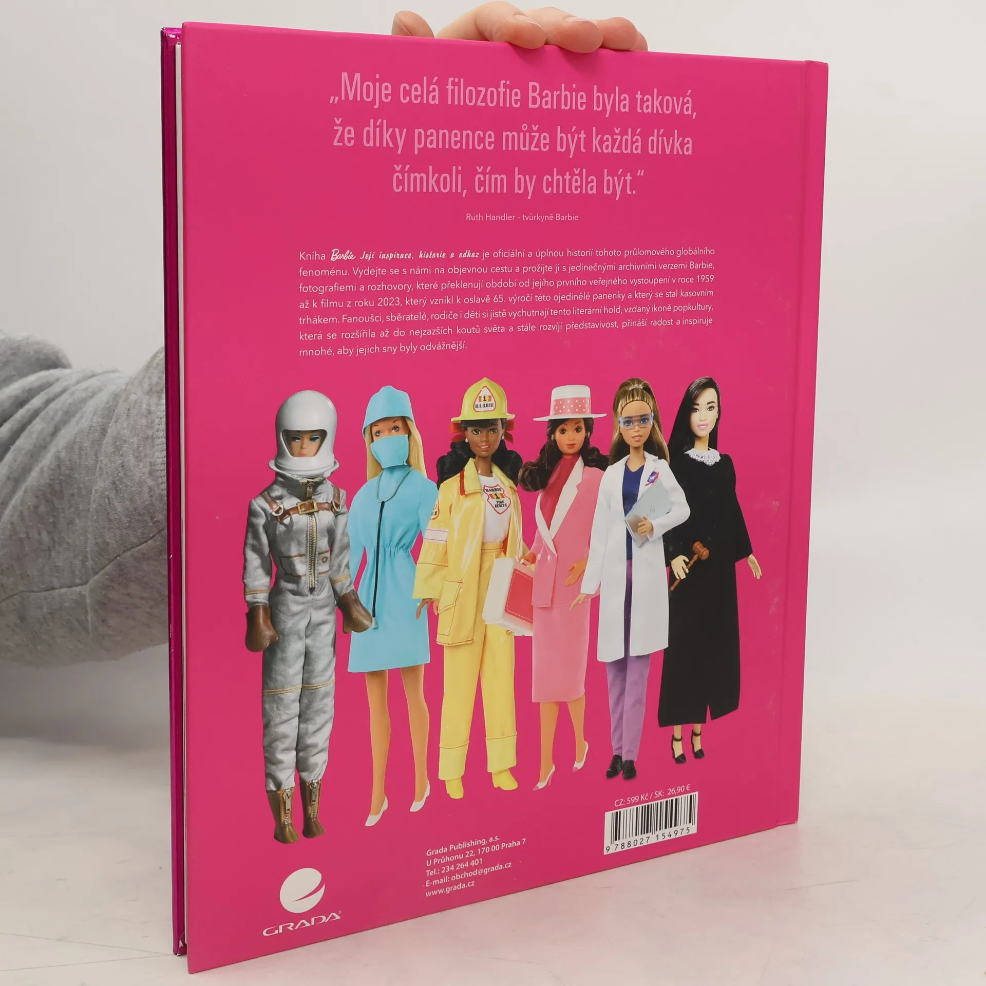 Vydejte se do fascinujícího a převážně růžového světa ikonické panenky Barbie a jejího skutečného příběhu. Vzrušující cesta povede od vzniku této úspěšné hračky až k vytvoření symbolu ženského idolu a sebevědomí. Kniha je vytvořená ve spolupráci se společností Mattel k oslavě 65. výročí vzniku panenky Barbie. Obsahuje vzácné archivní obrázky a skicy z raných dob i jejího dalšího vývoje až do současnosti. Vzdává poctu zbožňované ikoně holčiček, dívek, žen i mužů poválečné popkultury. Tento globální fenomén v podobě drobné panenky odráží vkus, styl, módu, inkluzi i převratné události každého desetiletí její dlouhé historie.
