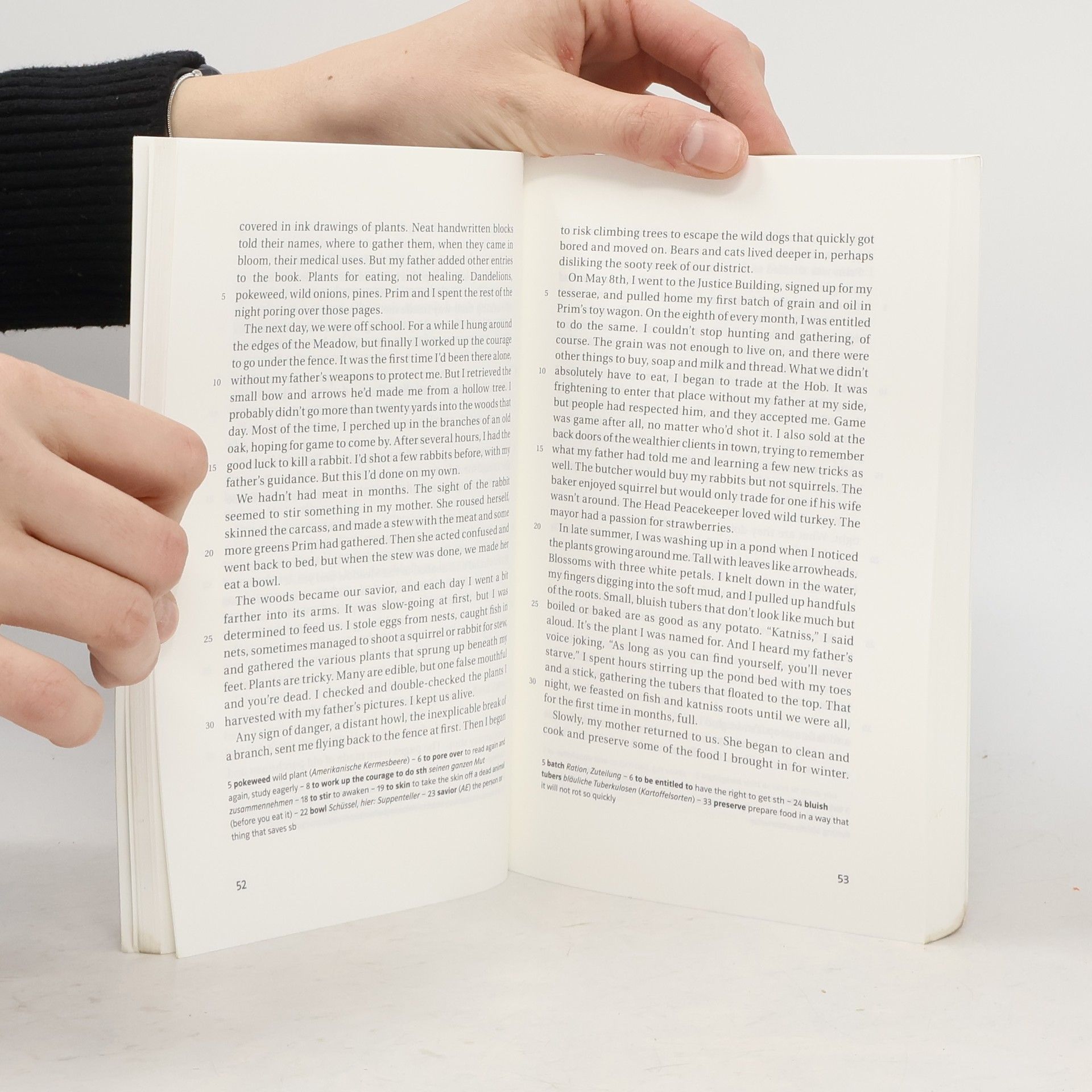 In den Ruinen des ehemaligen Nordamerika liegt die Nation Panem, eine schillernde Hauptstadt umgeben von zwölf Außenbezirken. Um diese Bezirke unter Kontrolle zu halten, zwingt man sie, jährlich einen Jungen und ein Mädchen zwischen 12 und 18 auszuwählen - um live im Fernsehen auf Leben und Tod gegeneinander zu kämpfen. Als die 16-jährige Katniss Everdeen den Platz ihrer Schwester im Wettkampf einnimmt, hält sie das zunächst für ein Todesurteil. Aber Katniss ist dem Tod schon oft begegnet und noch immer entkommen. Doch wenn sie gewinnen und überleben möchte, wird sie schwierige Entscheidungen treffen müssen: Überleben oder Menschlichkeit? Leben oder Liebe? Abiturempfehlung zu den Themenbereichen Utopia, Dystopia und Media and Society