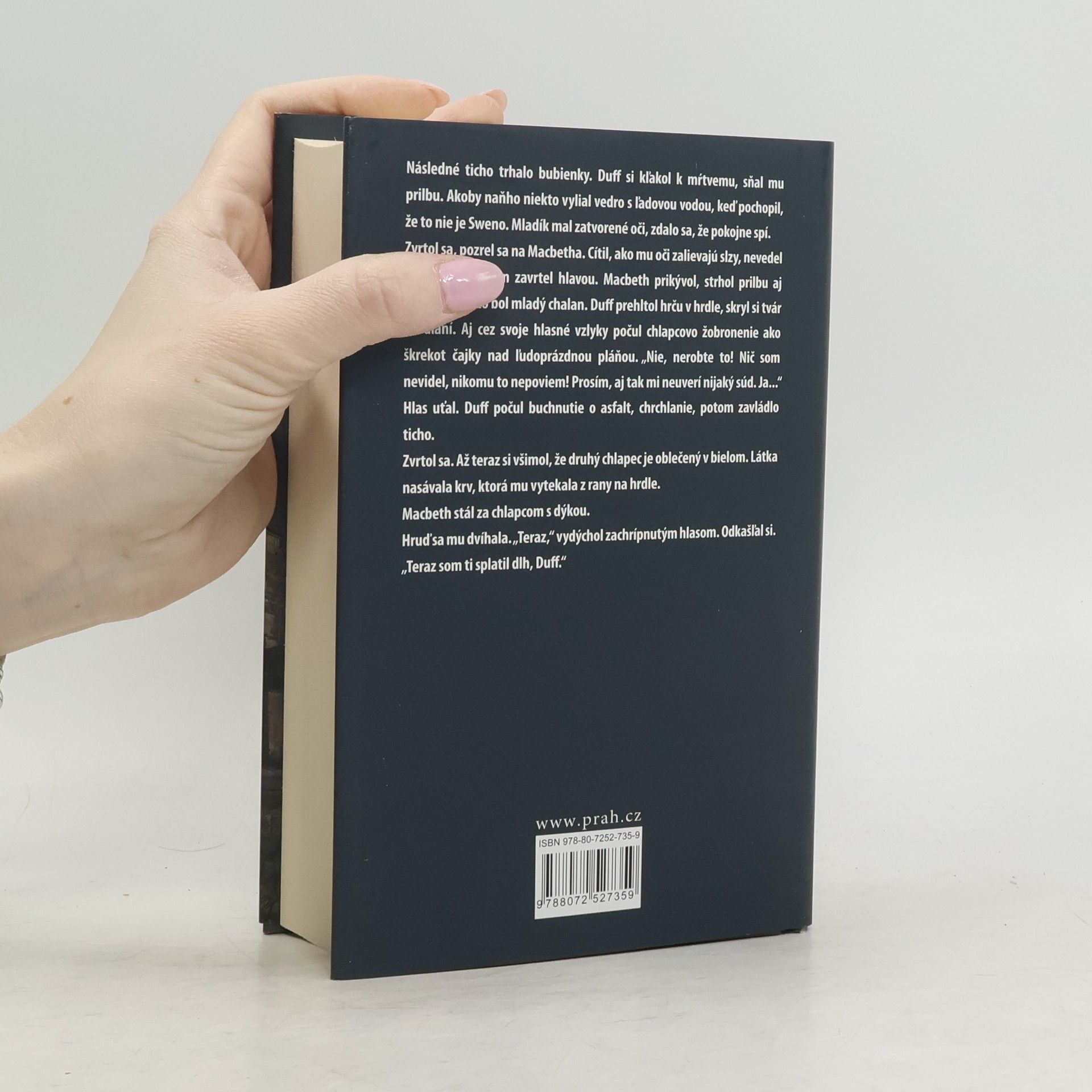 Sedemdesiate roky, ponuré priemyselné mesto sužuje chudoba a úpadok mravov. Zatvára sa jedna továreň za druhou, po uliciach sa potácajú narkomani a vysoko postavení občania figurujú na výplatných páskach dílerov. Macbeth je policajt s temnou minulosťou. Lady jeho milenka a majiteľka luxusného kasína. Hekate nie je bohyňa kúziel, ale mocný vodca drogového kartelu. A trojica odporných žien mieša v kotle namiesto čarovného elixíru tie najsilnejšie narkotiká... V podaní bestsellerového nórskeho spisovateľa Jo Nesboa sa miesto a postavy slávnej Shakespearovej tragédie menia, ale najdôležitejšie prísady – ambície, vášne a zrada – zostávajú rovnaké. Aj po viac ako štyroch storočiach. Z anglického překladu Dona Bartletta překlad do slovenštiny Jozef Zelizňák.