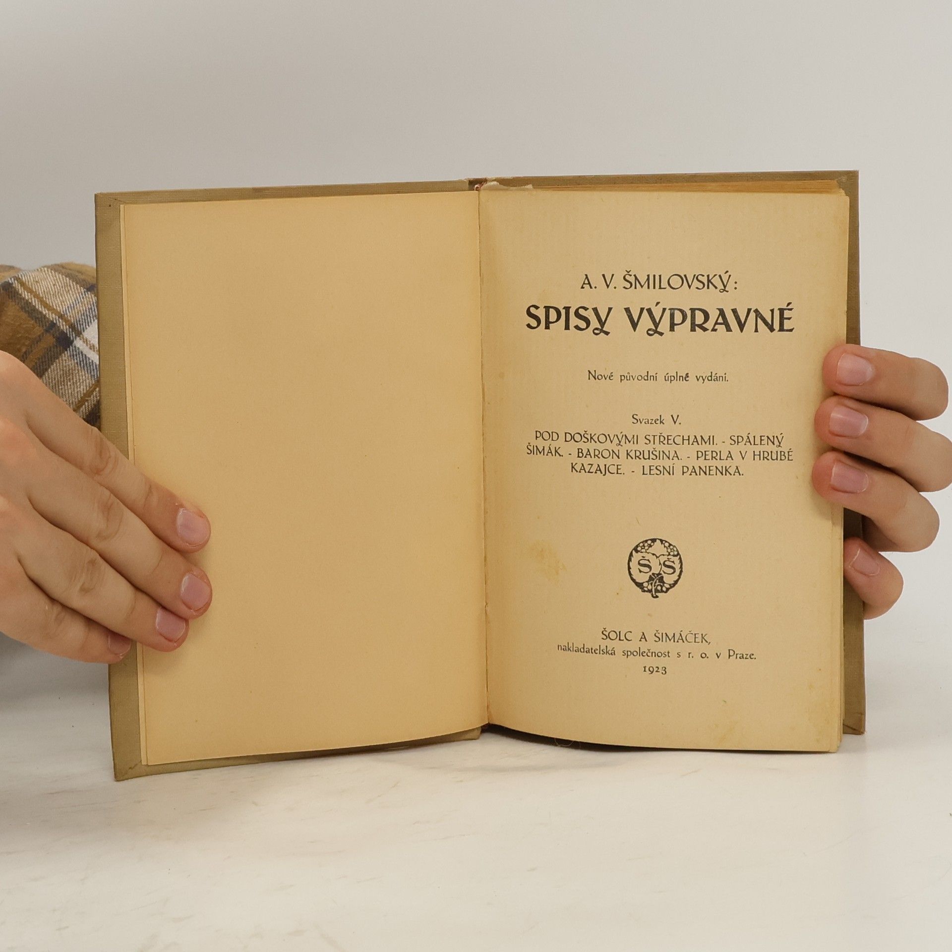 Spisy Šmilovského V. Pod doškovými střechami. Spálený Šimák. Baron Krušina. Perla v hrubé kazajce. Lesní panenka, Alois Vojtěch Šmilovský