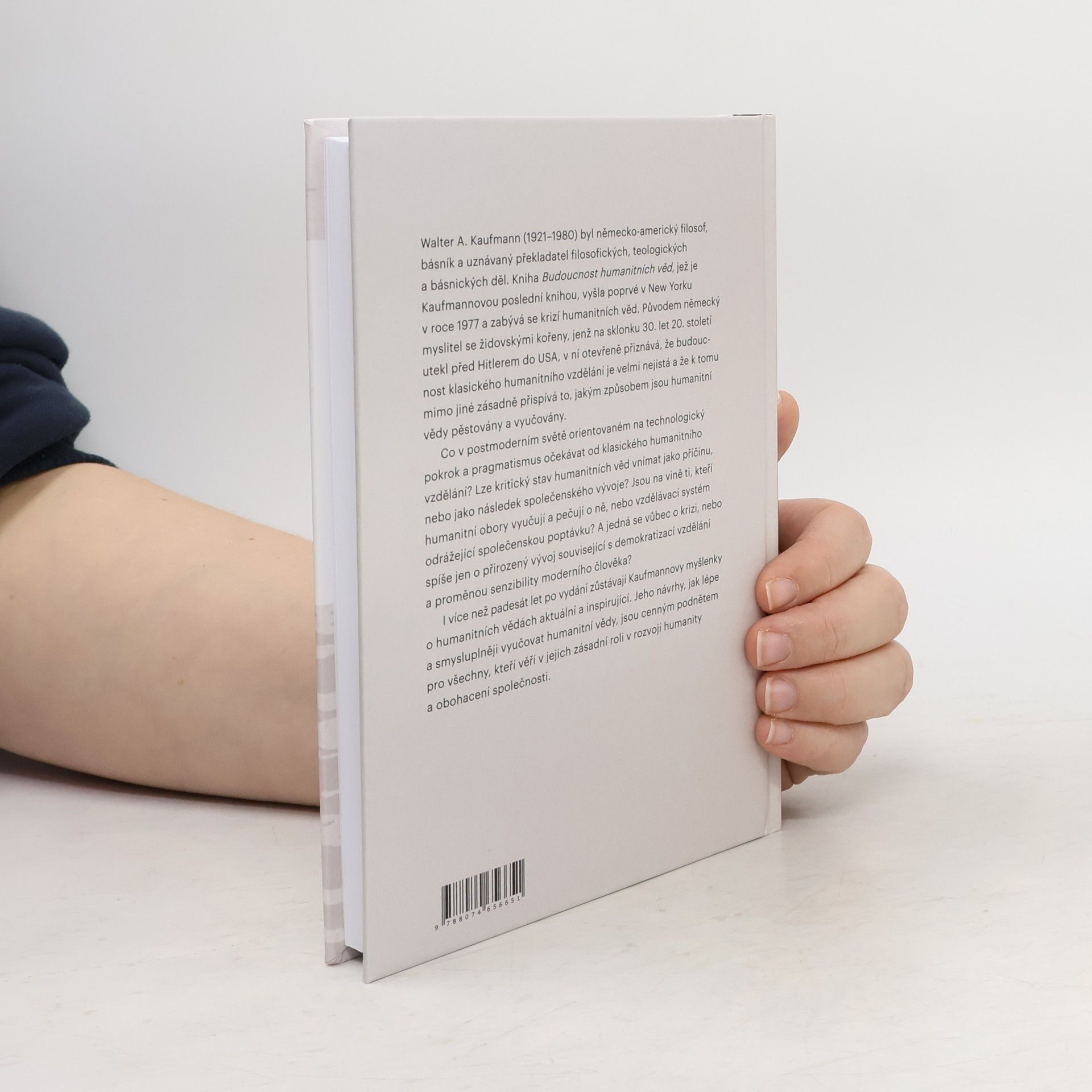 Walter A. Kaufmann (1921–1980) byl německo-americký filosof, básník a uznávaný překladatel filosofických, teologických a básnických děl. Kniha Budoucnost humanitních věd, jež je Kaufmannovou poslední knihou, vyšla poprvé v New Yorku v roce 1977 a zabývá se krizí humanitních věd. Původem n... celý text