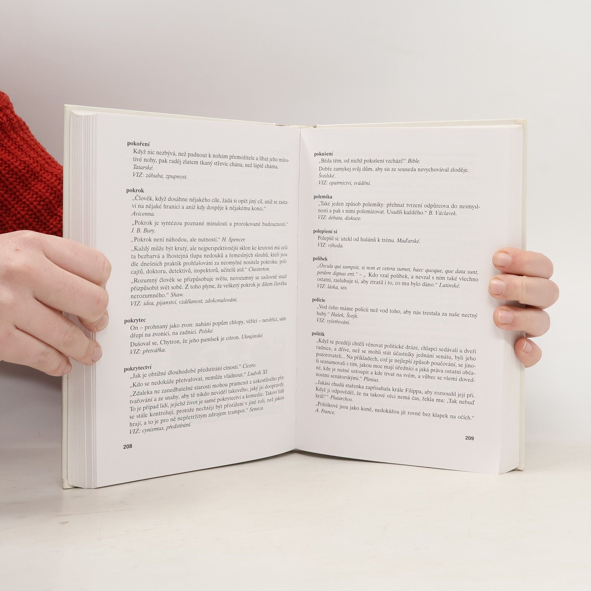 Citáty z židovských, islámských, buddhistických i křesťanských filozofií, z písemných pramenů. Kniha obsahuje více než 1300 hesel, je abecedně uspořádaná a je doplněna heslářem.