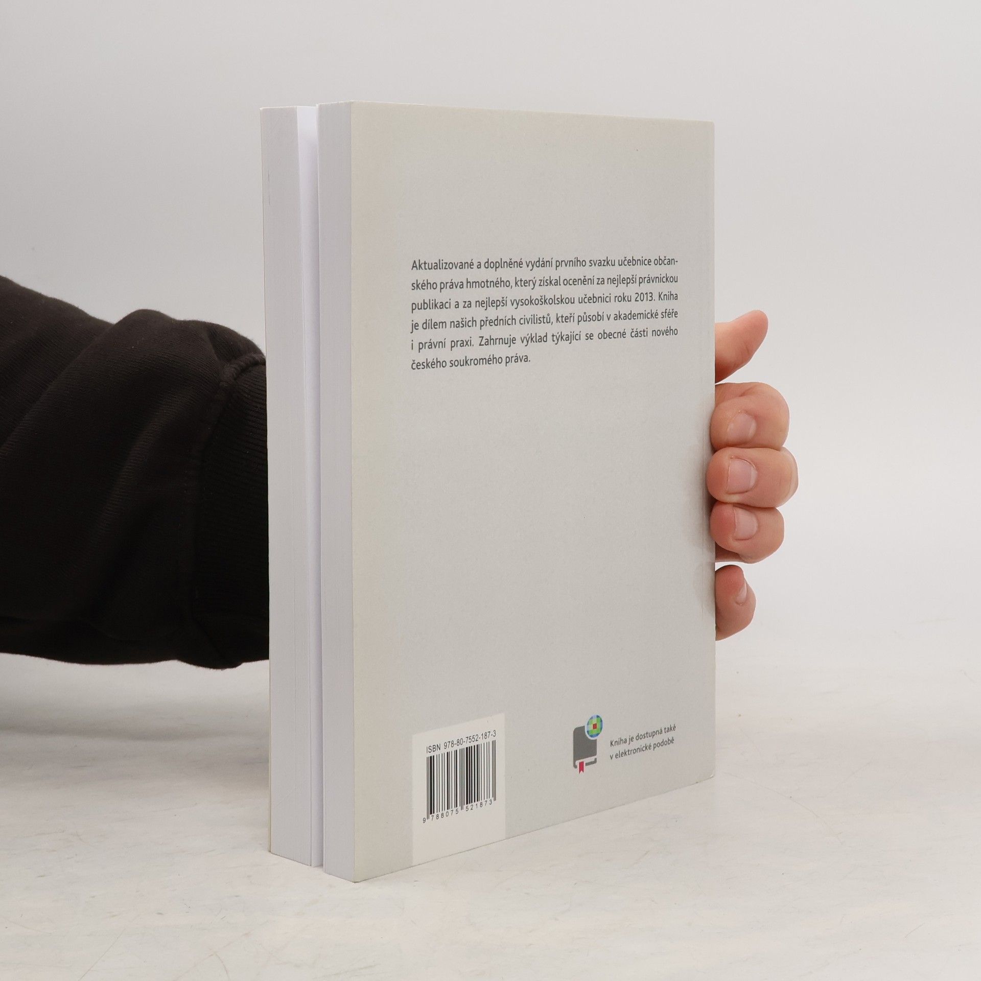 Aktualizované a doplněné vydání prvního svazku učebnice občanského práva hmotného, který získal ocenění za nejlepší právnickou publikaci a za nejlepší vysokoškolskou učebnici roku 2013. Kniha je dílem našich předních civilistů, kteří působí v akademické sféře i právní praxi. Zahrnuje výklad týkající se obecné části nového českého soukromého práva.