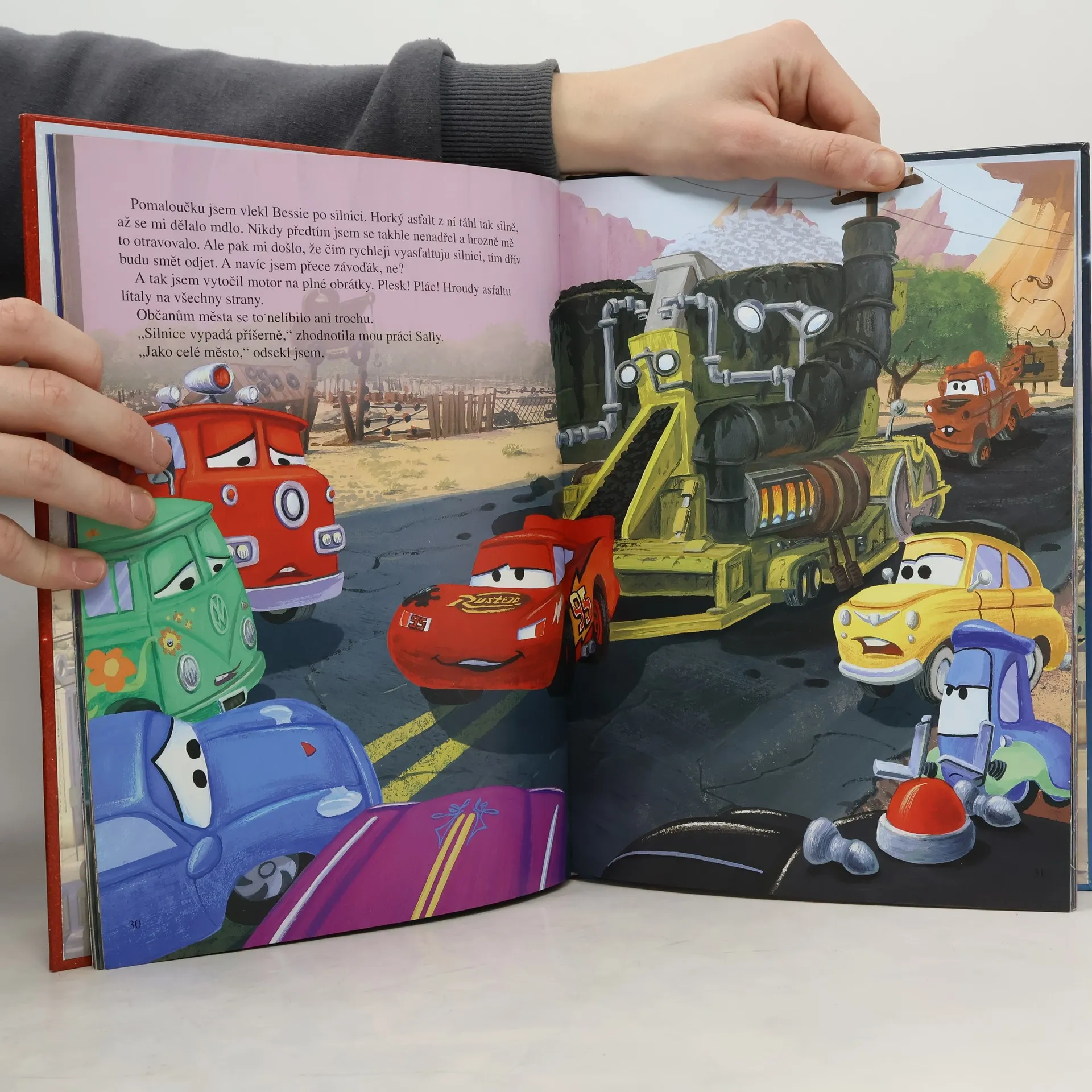 Disney • Pixar Vítězství v Šampionátu o Zlatý píst je to jediné, po čem začínající závoďák Blesk McQueen touží. Ale pak se všechno nějak podivně zamotá a on se místo na závodní trati ocitne v Kardanové Lhotě, zapomenutém městečku na staré Silnici 66. A tam Blesk přijde na to, že život nejsou jen závody a že nevyhrává vždycky ten, kdo zrovna první přejede cílovou čáru.